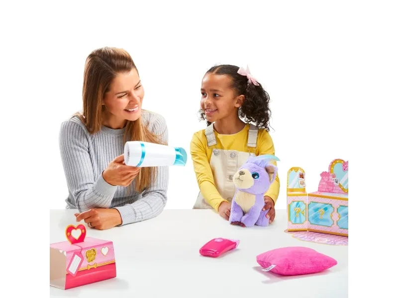 About the playset The whole salon kit brings the full salon experience. This realistic shaving/grooming activity feels like you are really cutting their fur. The shaver vibrates and buzzes in your hand and as you run it over the shaggy coat of the plush, its long fur comes away to reveal a shorter and tidy fur underneath. The shaver has no blades and doesn’t truly cut so while the simulation is totally realistic, it is limited to this toy. There is nothing else like it.