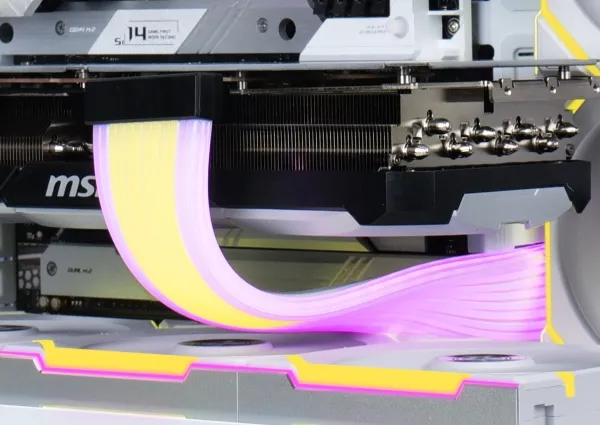 GPU 90 DEGREE CONNECTOR The GPU 12+4-PIN version of the Strimer Wireless is designed with a 90-degree angled male connector, improving clearance with larger graphics cards at PC case glass panels. The connector can also be flipped to the user’s desired orientation. This design ensures that even the most powerful and bulky GPUs can fit comfortably within your case without compromising on space or aesthetics.