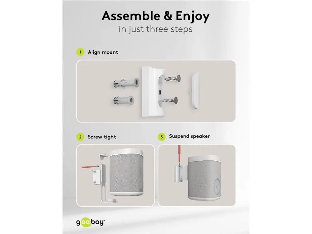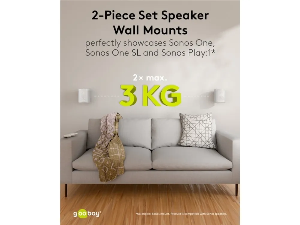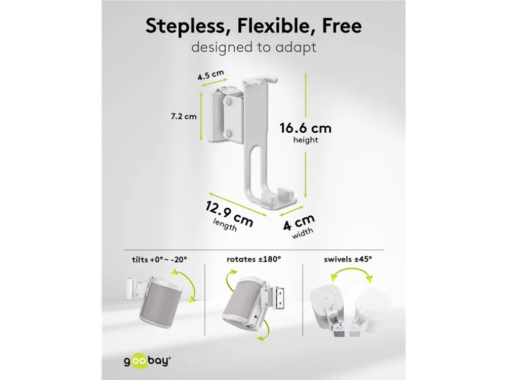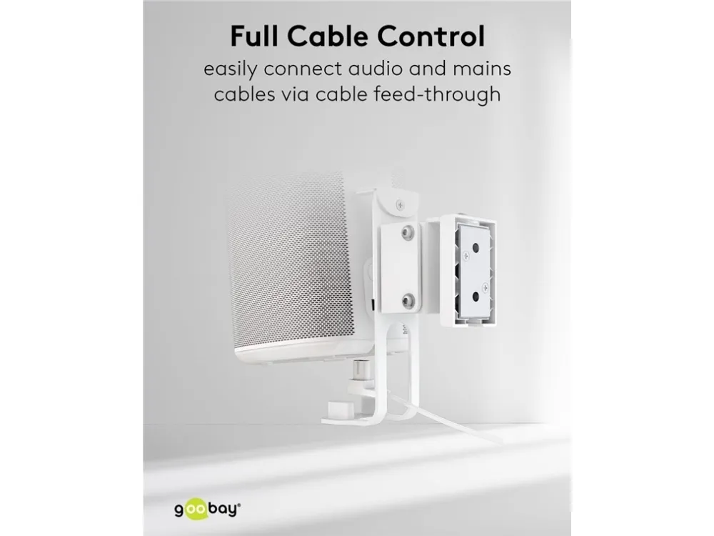 kompatibel mit dem Sonos One und Sonos One SL Lautsprecher-Halterung aus robustem Metall für die sichere Wandmontage von Satellitenlautsprechern bis 3 kg Kompatibel mit Lautsprechern wie dem Sonos One, Sonos One SL, Sonos Play:1 Durch die stabilen Gelenke ist der Wandhalter stufenlos bis zu -20° neigbar und ±45° schwenkbar Die Halterung ist zusätzlich um ±180° rotierbar, sodass der Lautsprecher auch kopfüber hängen kann Mit großzügigem Kabeldurchlass für ein komfortables Anschließen und Abstöpseln der Audio- und Netzkabel Per Schraubmontage ist die Lautsprecher-Halterung einfach an der Wand zu befestigen