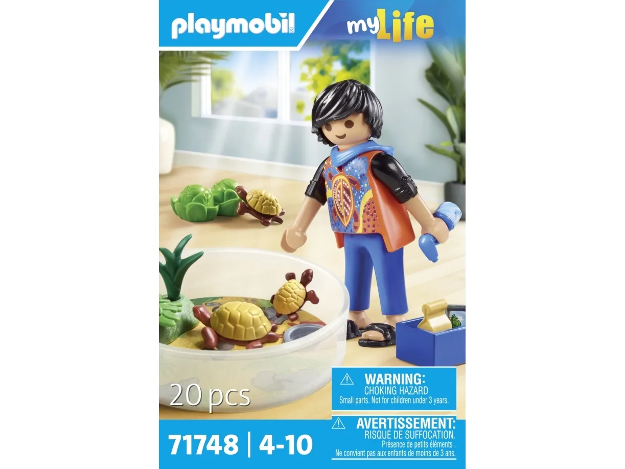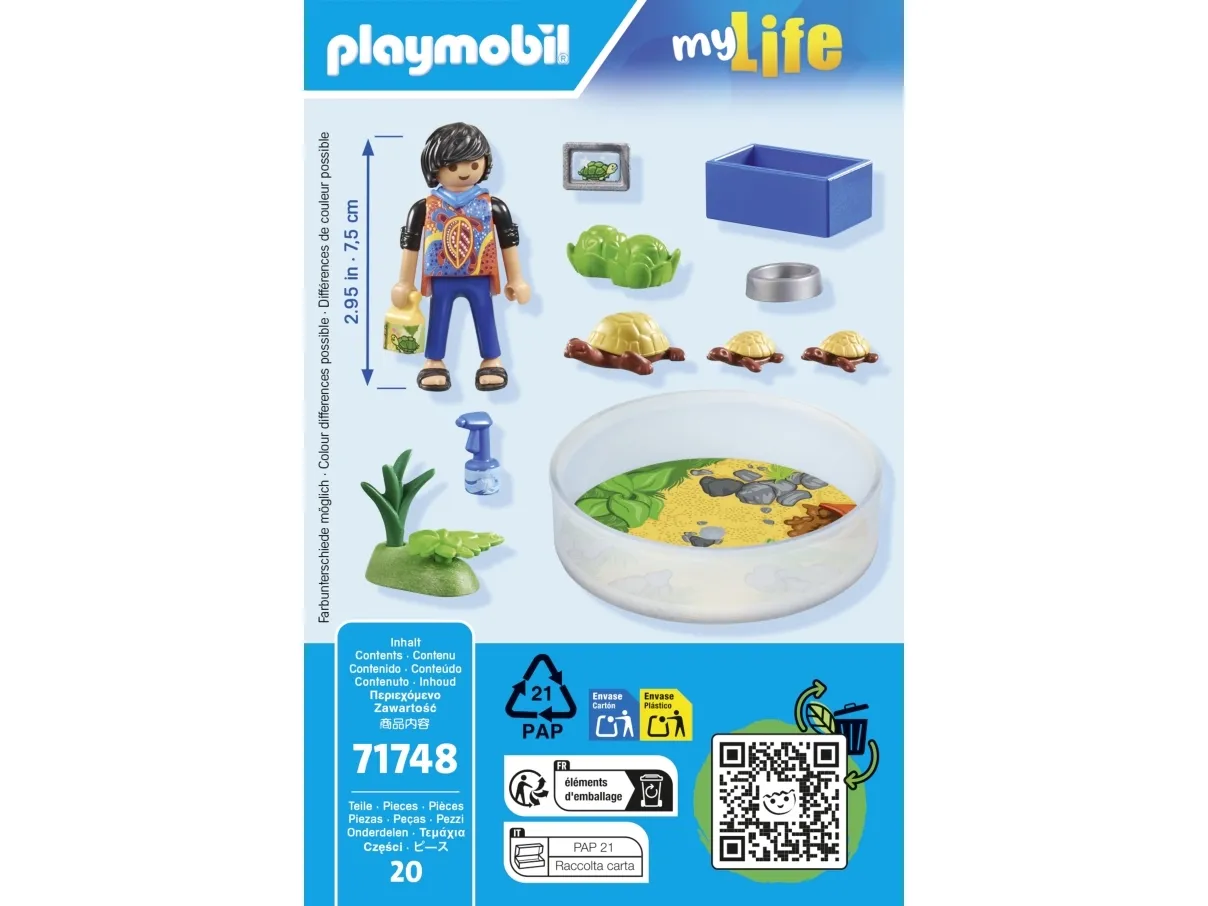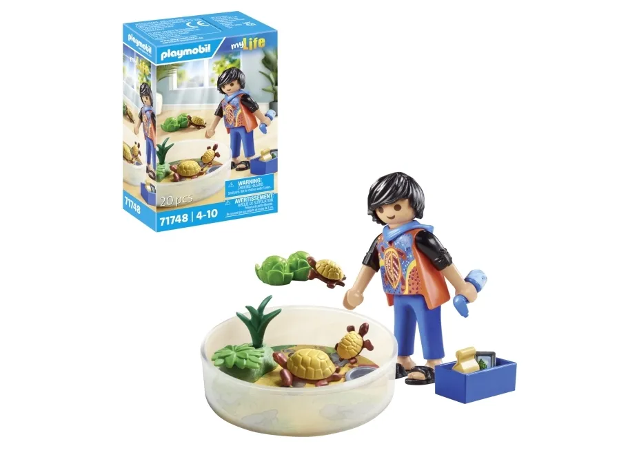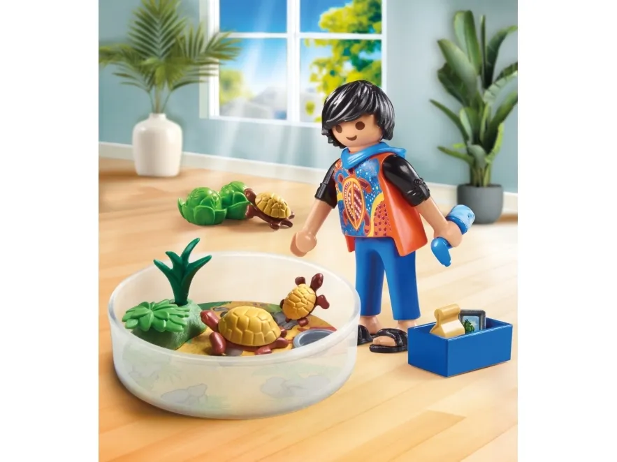 Der Tierpfleger versorgt die Schildkröte und ihren Nachwuchs, die im artgerechten Terrarium untergebracht sind.