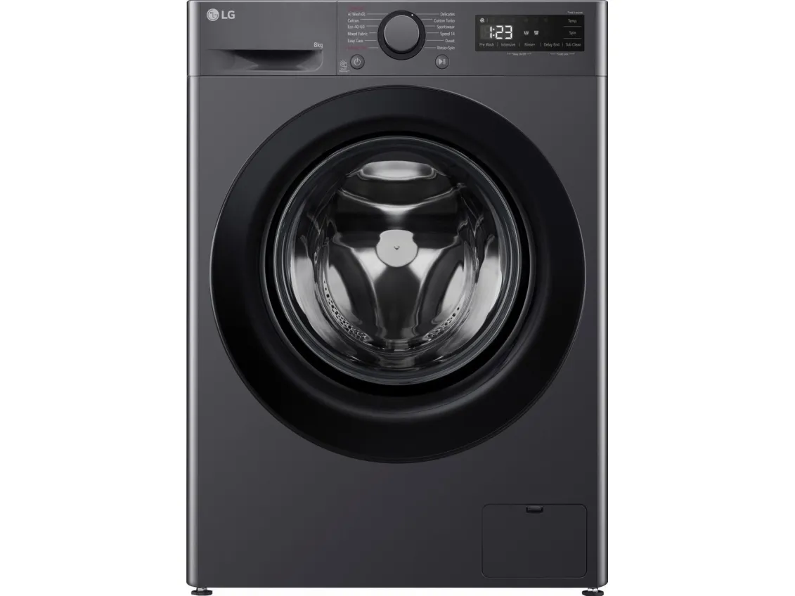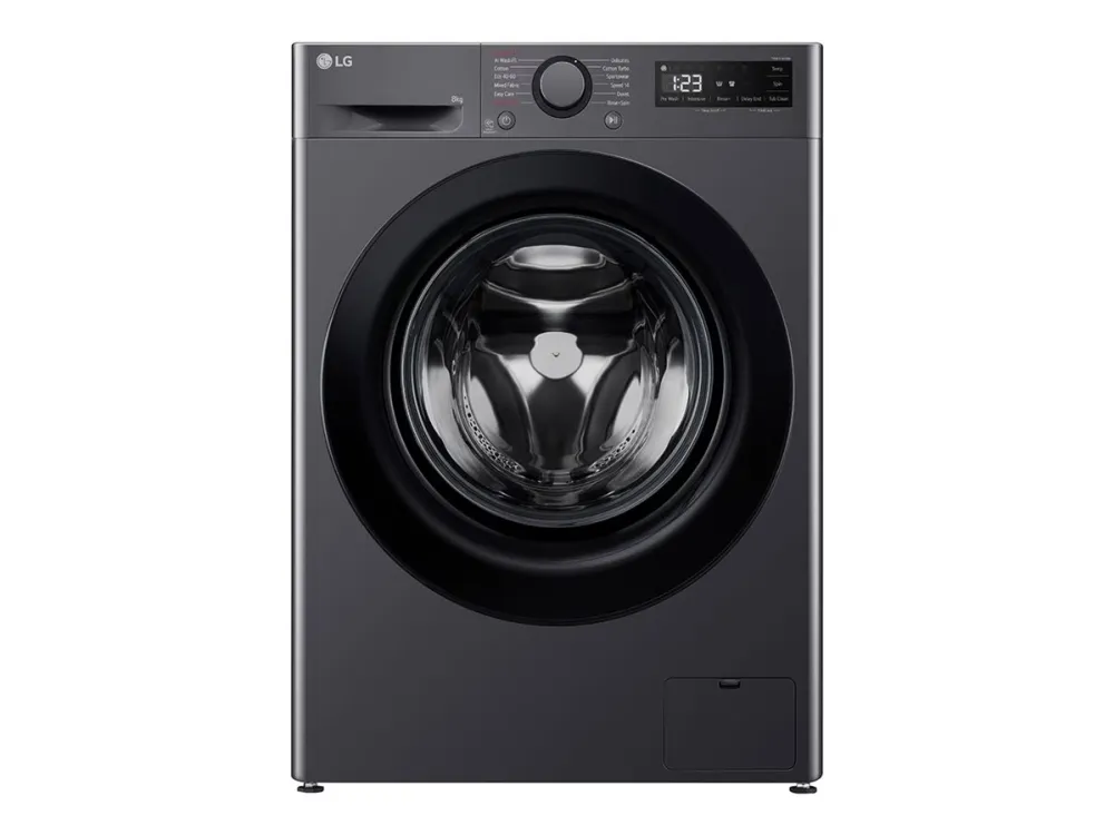 The LG F2WR508SBM is a front-loading washing machine designed to improve laundry care with its features and energy efficiency. This model utilizes a powerful Inverter Motor and incorporates AI DD technology, delivering cleaning performance tailored to your laundry needs. It offers a range of wash programs, including Eco 40-60, TurboWash 39, and AllergyCare, ensuring that every fabric receives proper care. With a loading capacity of 8 kg and a maximum spin speed of 1200 rpm, this washing machine can handle both small and large laundry loads while maintaining energy consumption at 0.42 kWh per cycle and 48 liters of water per wash. Safety features such as child security, door lock, and Smart Diagnosis provide peace of mind.