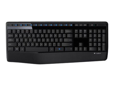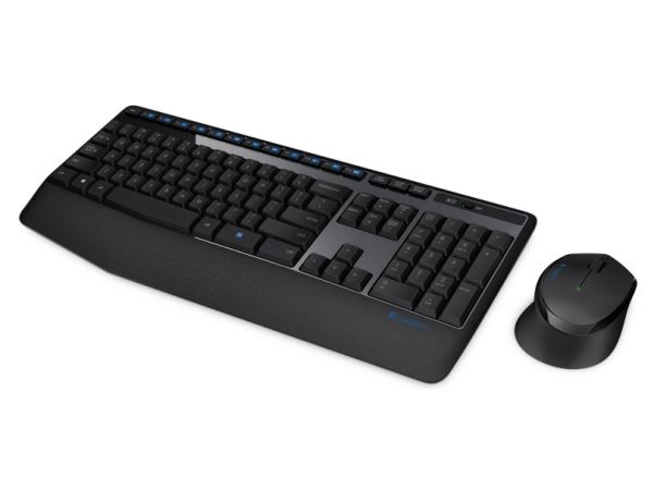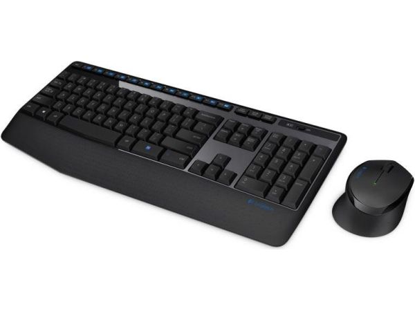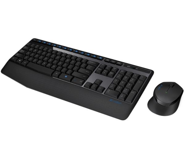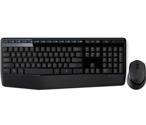 The Logitech Wireless Combo MK345 pairs a comfortable full-size keyboard with a right-handed mouse. The keyboard comes with a comfortable, textured palm rest; a spill resistant design; a glossy finish; and a caps lock indicator light. The mouse has a low-battery indicator, a large scroll wheel and smooth precise tracking.