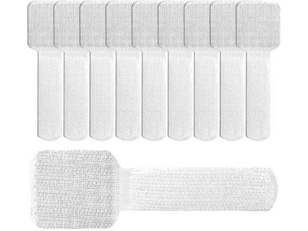 Allgemeine Infos - 10 weisse selbstklebende Wand-Kletthalter; - LTC WALL ist schnell geöffnet und wieder verschlossen; - Weisses, teilweise selbstklebendes Klettband; - Maße: Gesamtlänge Kletthalter ca. 9 cm, klebende Fläche ca. 3 cm x 3,3 cm.