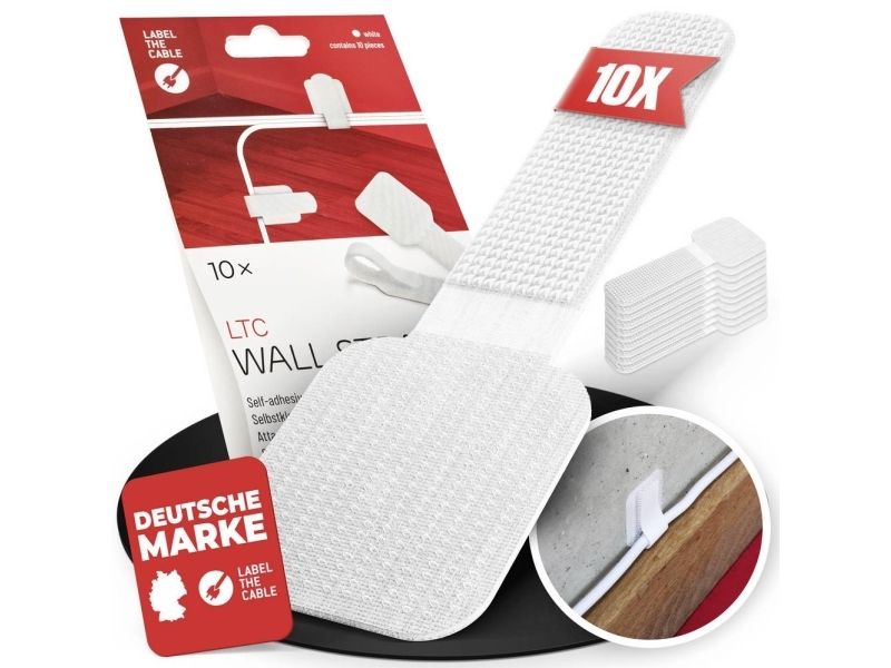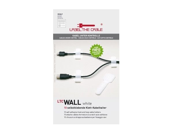 Mit LABEL THE CABLE WALL selbstklebenden Klett-Wandhaltern machen Sie Schluss mit dem Kabelchaos. Überall, wo Kabel an Wänden oder Möbeln runterhängen, können Sie diese nun in ordentliche Bahnen lenken. Mit LTC WALL zeigen Sie den Kabeln wo es lang geht. In Schwarz oder Weiß erhältlich.