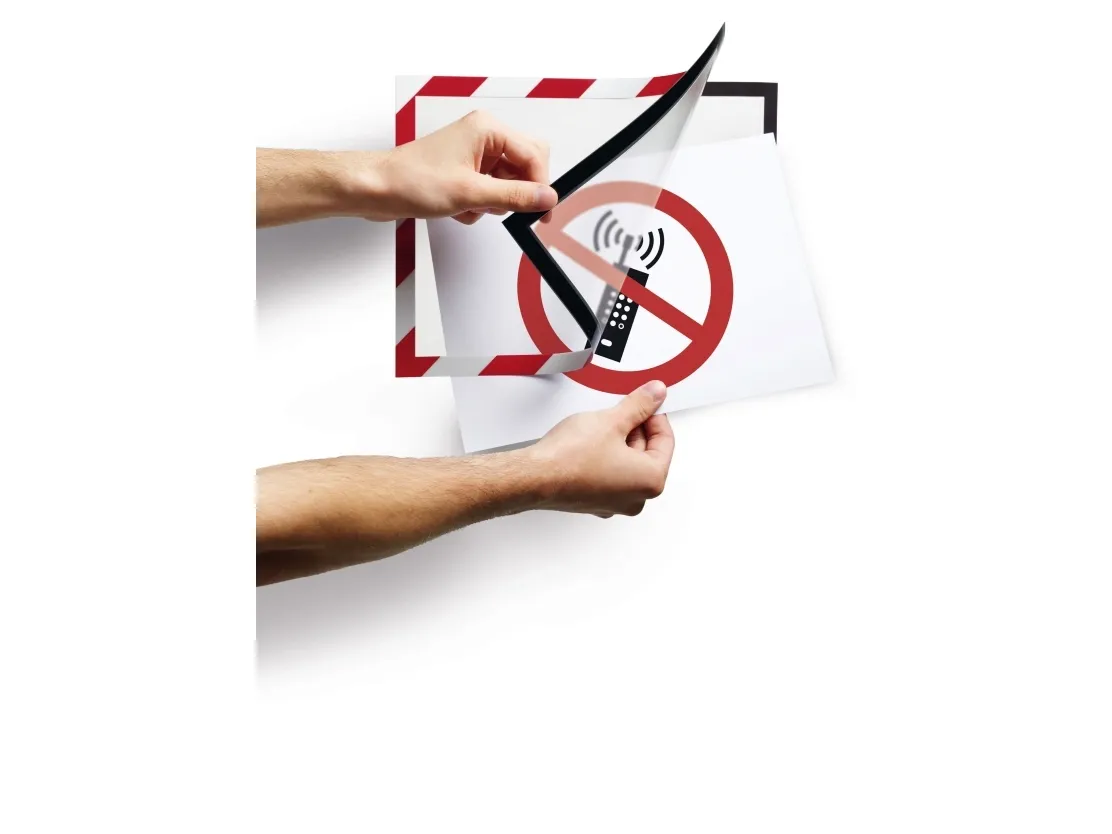 Ihre Infos perfekt in Szene gesetzt. Der selbstklebende zweifarbige Info-Rahmen DURAFRAME SECURITY eignet sich zur Kennzeichnung von Sicherheit- und Gefahrenkennzeichen.