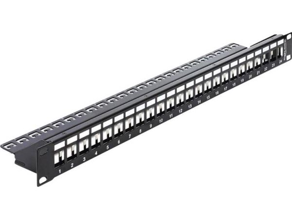 This Patch Panel by Delock can be mounted in a 19? rack. With its standardized dimensions, it is suitable for easy snap-in mounting of 24 Keystone modules.