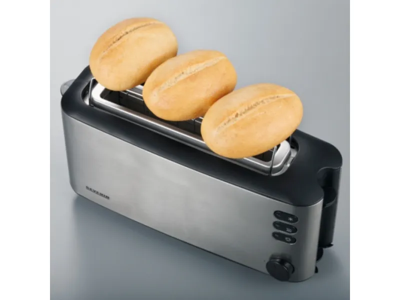 The SEVERIN AT 2515 toaster is designed for efficiency and convenience, perfect for anyone who enjoys a quick breakfast or snack. It features a power consumption of 1000 W, ensuring that toasting is fast and effective. The toaster accommodates one slice with adjustable browning control, allowing for a customized toasting experience. Additional features like a crumb tray make cleaning effortless, while the defrost function enables quick thawing of frozen bread before toasting. Safety is prioritized with the cool touch exterior and auto shut-off feature.