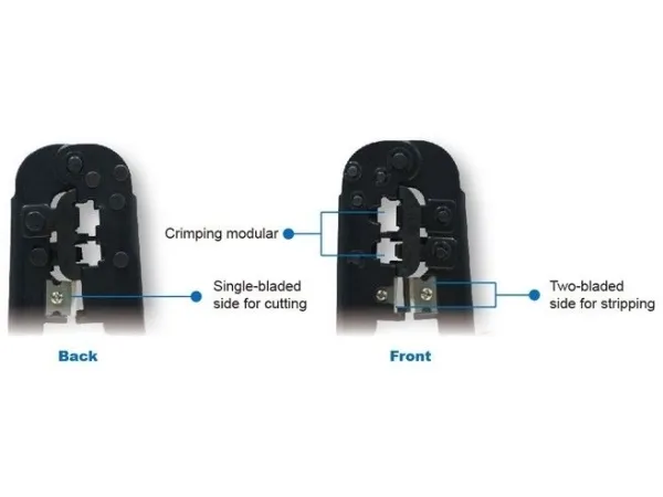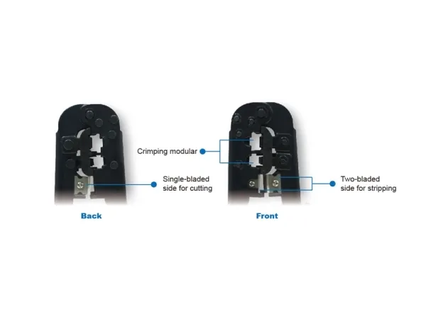 Die Modulare Crimpzange ist besonders für 8P8C RJ45 Stecker geeignet. Leichtgängiger Kabelschneider, einfache Abisolierfunktion, integrierter Klingenschutz und einfache Bedienung. Der gummierte, rutschfeste Kunststoffgriff sorgt für festen Halt und sicheres Arbeiten. Die Zange ist aus hochwertigem Metall.