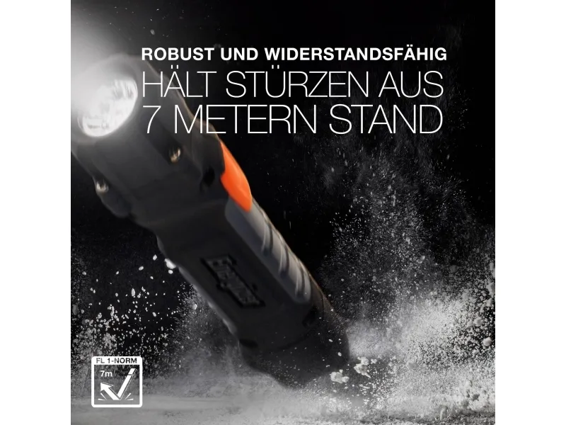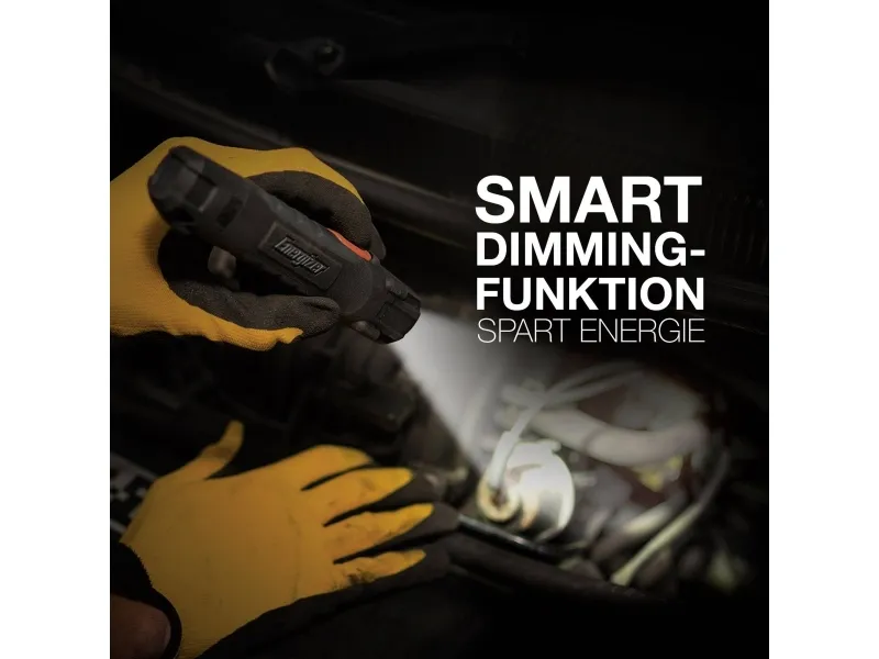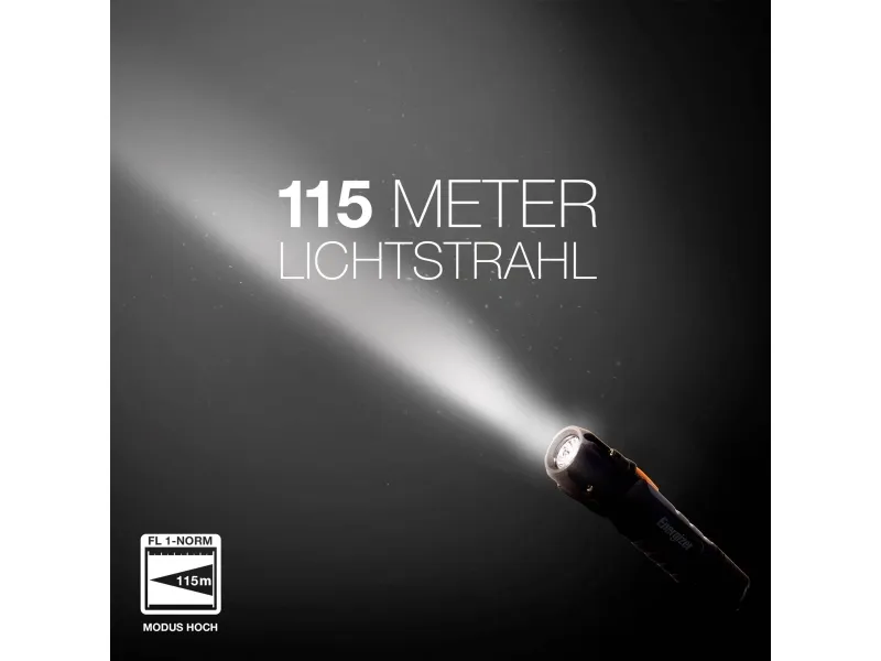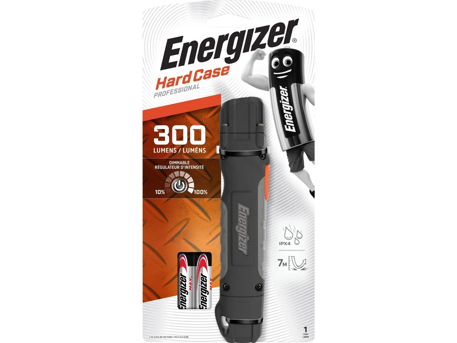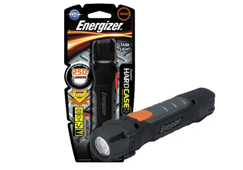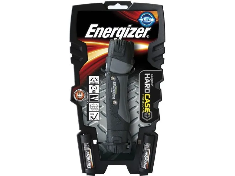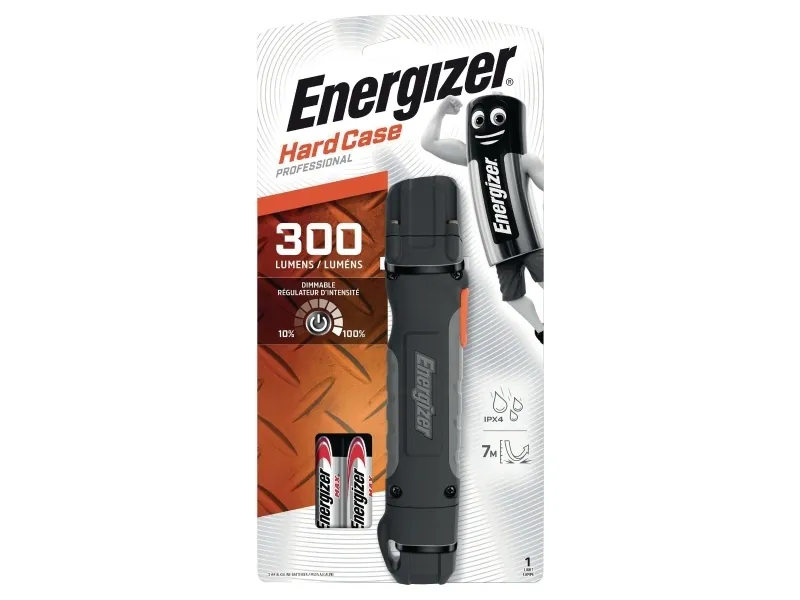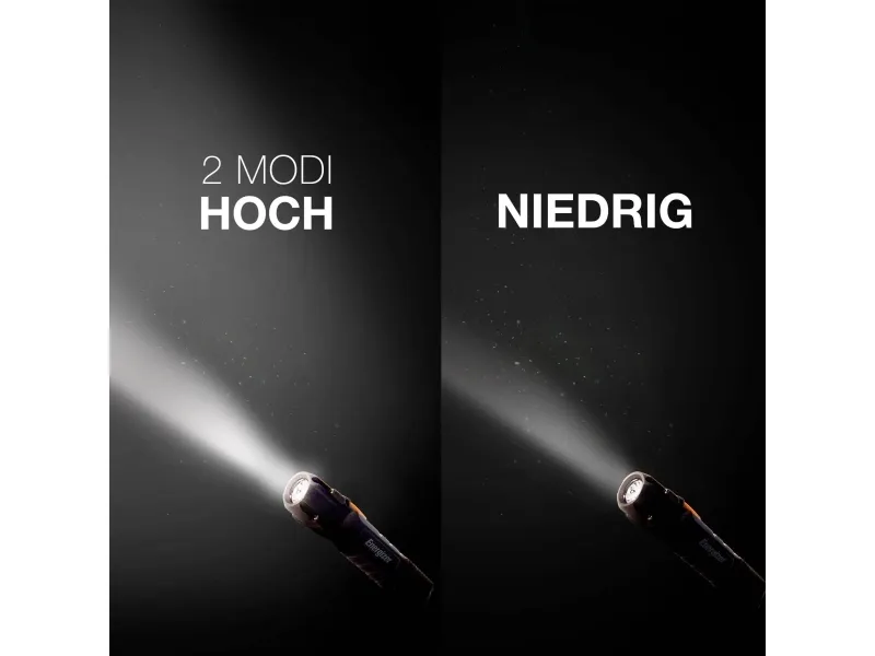 - LED bulb provides bright white light for tough jobs - High and Low modes for brightness & runtime control - Rugged ABS, steel and rubber construction - Durable light survives drops up to 7 meters and features a shatterproof lens - Large push-button switch for easy operation, even with gloves - Compact light is easy to carry and store - Includes 2 Energizer® MAX® AA batteries