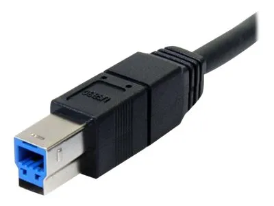 Mit dem schwarzen 3 m langen USB 3.0 A-auf-B-Kabel USB3SAB3MBK können Sie USB 3.0 B-Geräte, z. B. Festplattengehäuse, Kartenlesegeräte, Dockingstationen und Videoerfassungsgeräte, in bis zu 3 Metern Entfernung vom Computer anschließen.