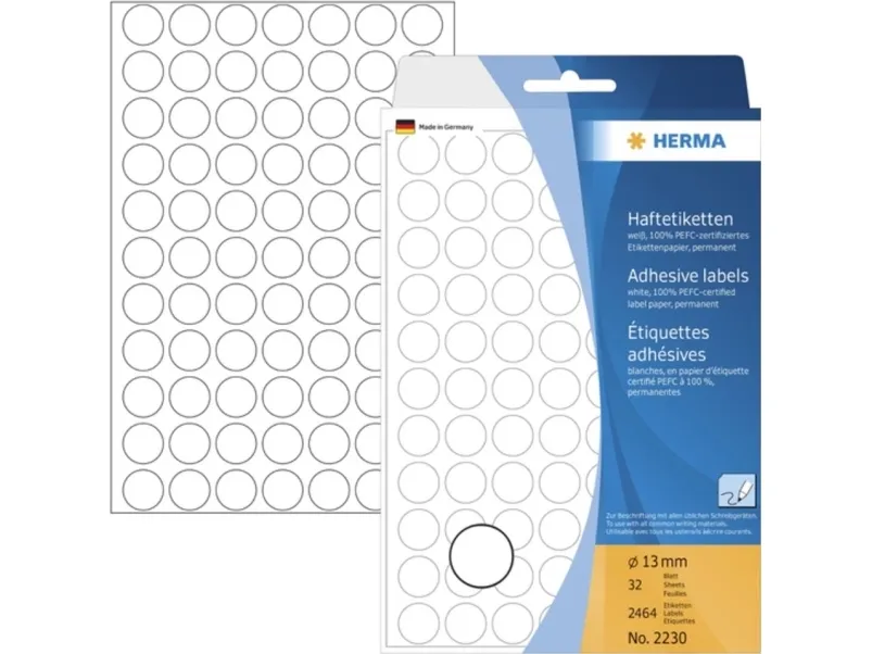 - Vielzwecketiketten, selbstklebend - Ideal zum Kennzeichnen, Markieren und Organisieren. Farben sorgen für mehr Übersicht - Umweltfreundlich: hochwertiges, chlorfrei gebleichtes Spezialpapier, lösemittelfreier Haftkleber. Weißes Etikettenpapier PEFC-zertifiziert - Sicher und permanent haftend auf allen Oberflächen - Blattformat 111 x 170 mm - Zur Handbeschriftung mit allen Schreibgeräten und Schreibmaschinen - Nicht für PC-Beschriftung geeignet. Nutzen Sie dafür HERMA Etiketten auf A4-Blättern