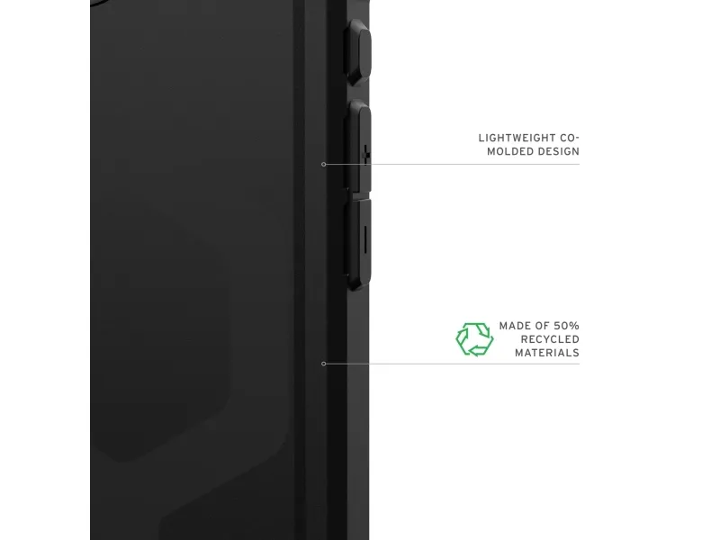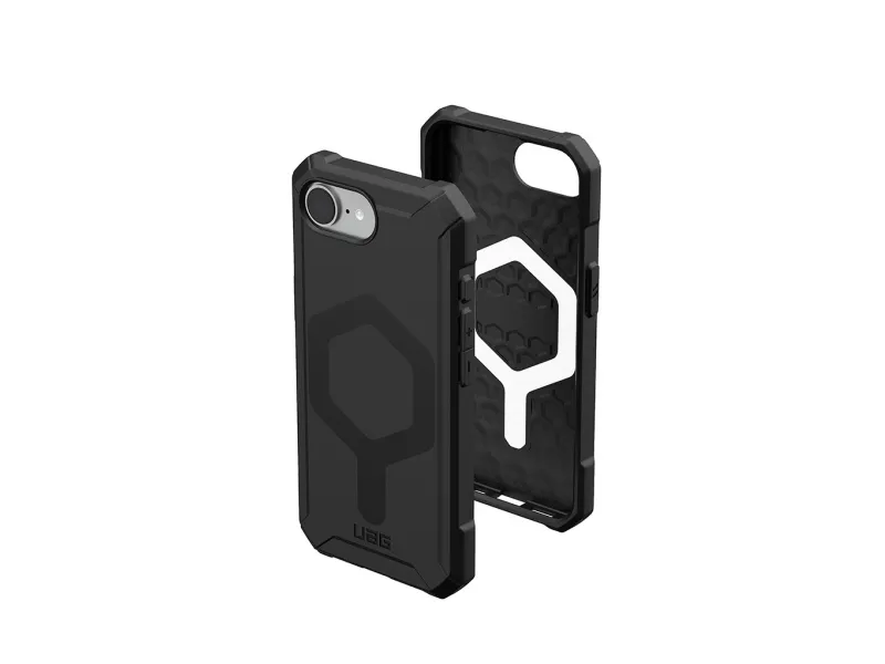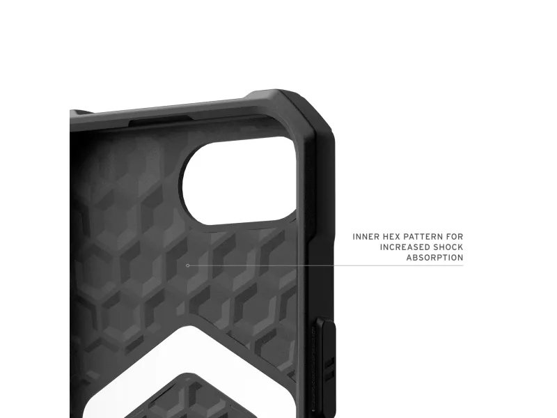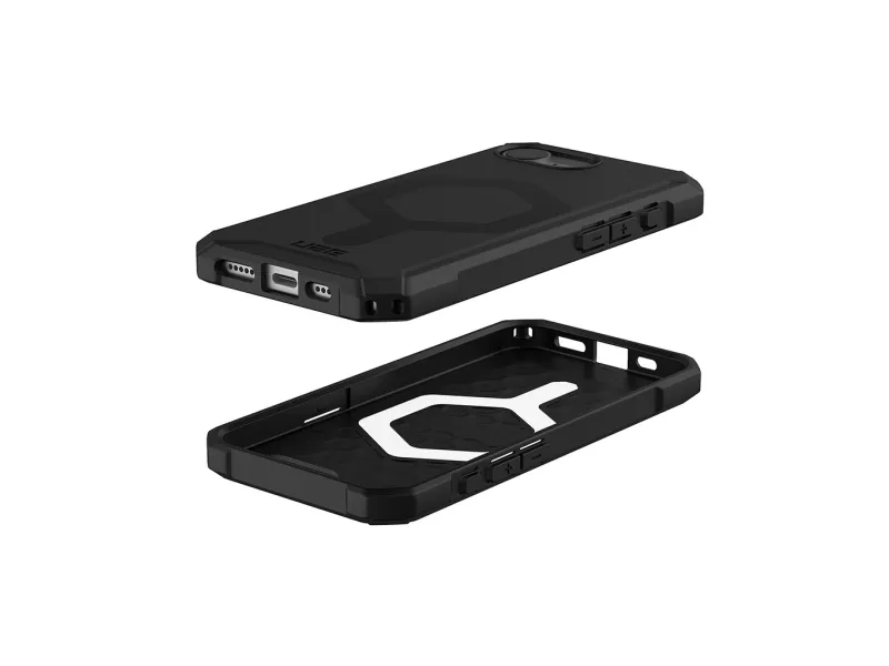 The UAG Essential Armor Series protective cover provides robust protection for cell phones without sacrificing style. Designed with a lightweight structure and enhanced corner protection, this back cover ensures your device remains safe from drops and bumps, complying with MIL-STD 810G 516.6 standards. Built-in magnets facilitate a seamless connection to MagSafe accessories, while oversized tactile buttons enhance usability. Additional attributes such as the raised camera bezel and co-molded design contribute to its functionality and aesthetic appeal, making it a practical choice for anyone seeking durability in a phone case.