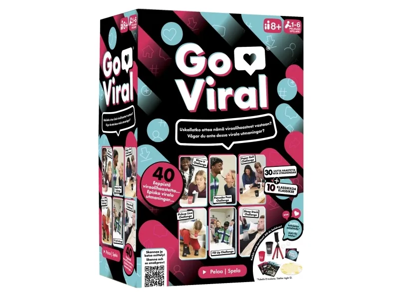 Fun family party game! See if you can succeed in the challenges, which are international viral hits! The pack incl. 40 challenge cards, accessories, a tripod (because you’ll want to film your challenges!) and QR codes for video demos. 1-6 players. 8+