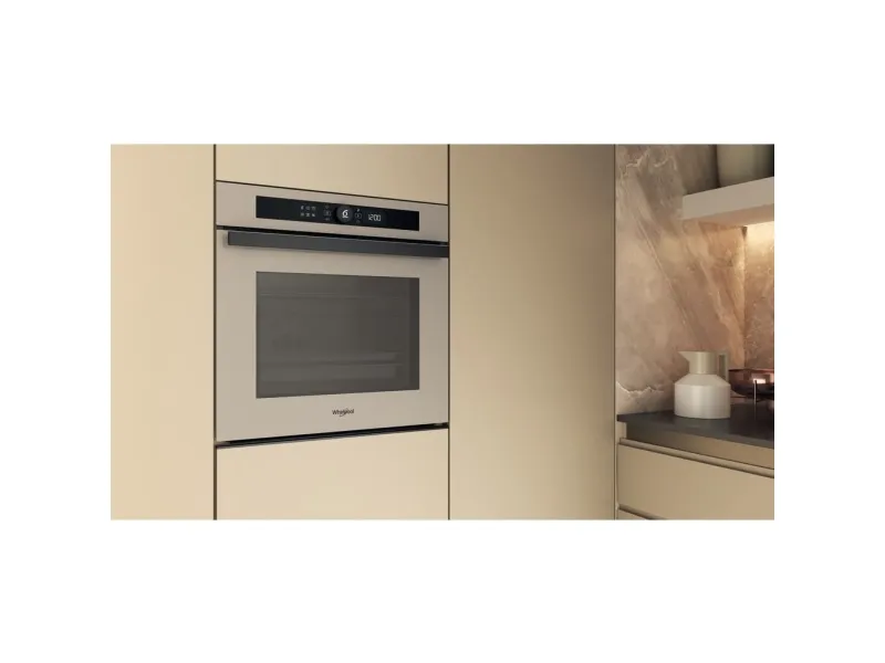 Whirlpool WOI4S8CM1SEA. Oven size: Medium, Oven type: Electric, Total oven(s) interior capacity: 73 L. Appliance placement: Built-in, Product colour: Beige, Control type: Touch. Timer type: Digital. Energy efficiency class: A+, Energy consumption (conventional): 0.67 kWh, Energy consumption (forced convection): 0.9 kWh. Lamps quantity: 1 lamp(s), Lamp type: Halogen, Illumination location: Rear