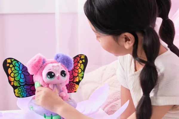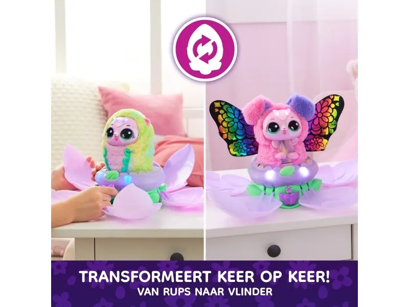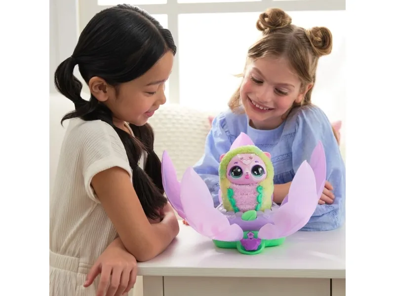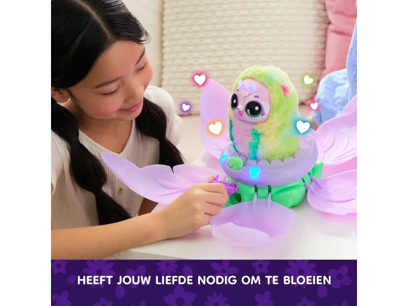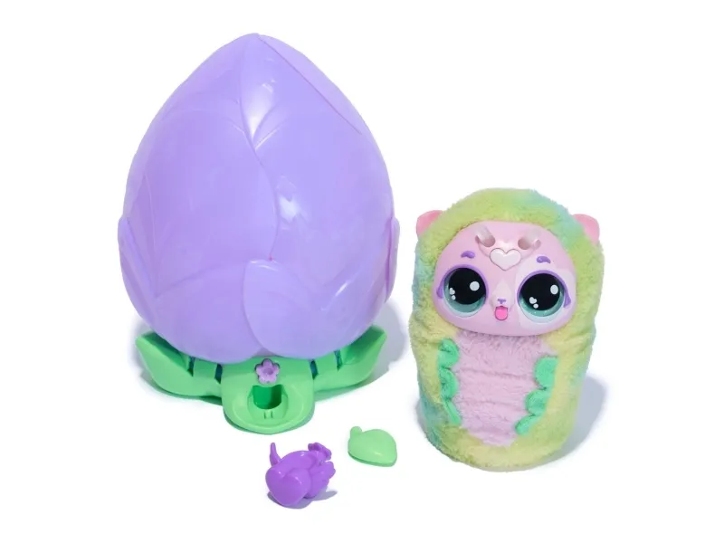 Bloomables by Hatchimals are in bloom. With an exciting double character reveal you can repeat, over 100 sounds and reactions and so many ways to play, Bloomables are a must-have. These magical flowers need your love to bloom. Nurture and shower the flower with the watering can accessory until it glows rainbow, then watch as the petals open, revealing an adorable Hatchipillar inside. Feed your new friend the leaf accessory, cuddle and play. When the antennae turn rainbow, it’s ready to transform. Place your Hatchipillar back inside the flower and the petals close. Enjoy the colorful lights and music until your fluttery friend blooms – the petals open once again, revealing a transformed Puppyfly with colorful wings. Tickle her, sing songs together, tell fortunes by asking Puppyfly questions and so much more. Inside each Bloomables Puppyfly flower, discover 1 of 2 characters, Blossom or Daisy. For even more ways to play, kids can repeat the blooming and reveals again and again. Those who enjoy surprise toys, electronic pets, action figures, dolls, and doll house play will love Bloomables boys and girls toys. Fun birthday gifts for girls and boys or for any occasion. Includes 3 AA batteries. Who will you bloom?