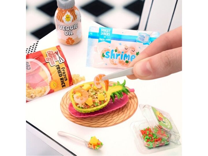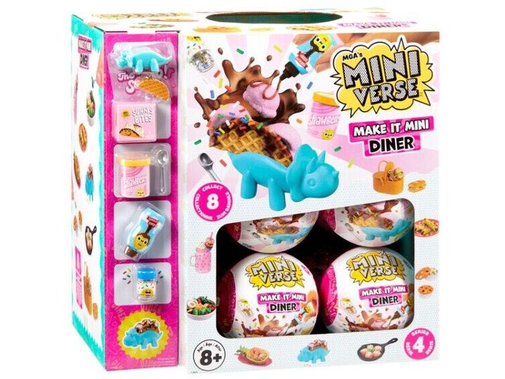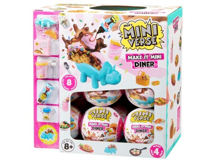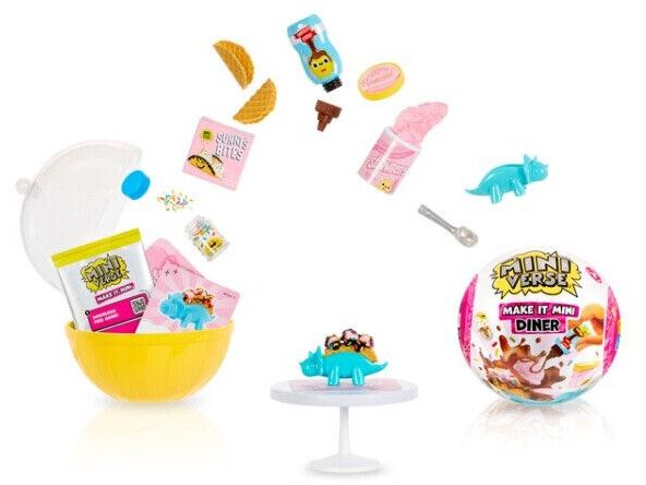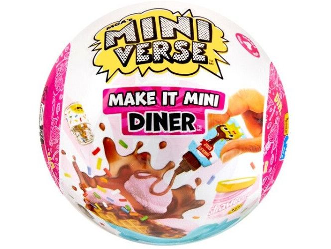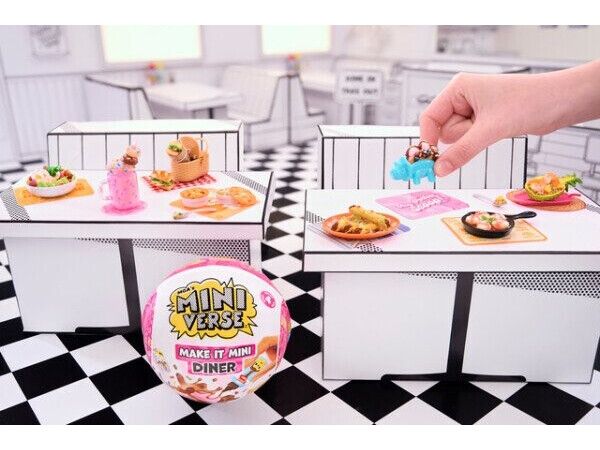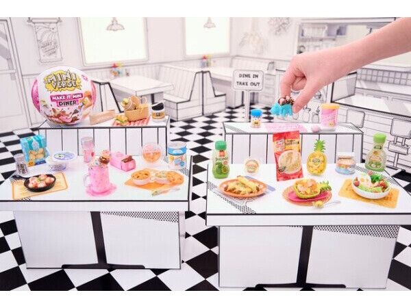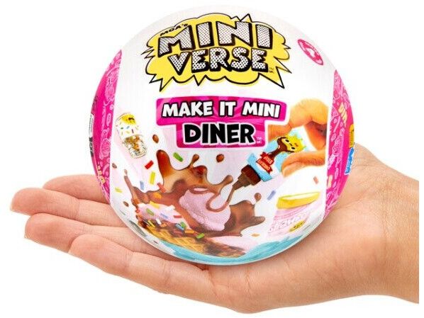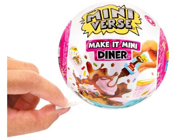 Meet MGA's Miniverse, Make It Mini Food™! The original mini collectible that you can prep, set & display. Each ball comes with realistic mini "ingredients" and kitchen accessories to make your own mini replicas of your favorite dishes and drinks! Each package is a SURPRISE. Follow the "recipe" card to prep your mini. Once you've finished creating your mini, set your replica under the sun or a 365nm UV light for about 5 minutes until the resin has hardened. Once it's set, you've got a collectible ready for display! The fun doesn't stop. there! Your finished replica is not the only item worth collecting. The mini kitchen accessories and packaging are just as cute and collectible. Each ball holds holds tableware, tools and 4-5 food ingredients to create delicious dishes. Includes also a table so that you can display your dishes and show them to your friends. From 8 years.