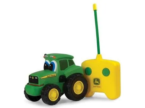 The Johnny Tractor RC is the perfect first radio control for toddlers! Featuring a simple, two-button controller, little ones will love to drive Johnny around while making him twist and turn. Johnny is durable enough to take bumps and bounces, yet soft enough that he won’t mark up walls or furniture. Features an auto shut-off to save batteries. Requires (3) AA and (1) 9V battery. Ages 18 months and up. Produced by TOMY and officially licensed by John Deere.