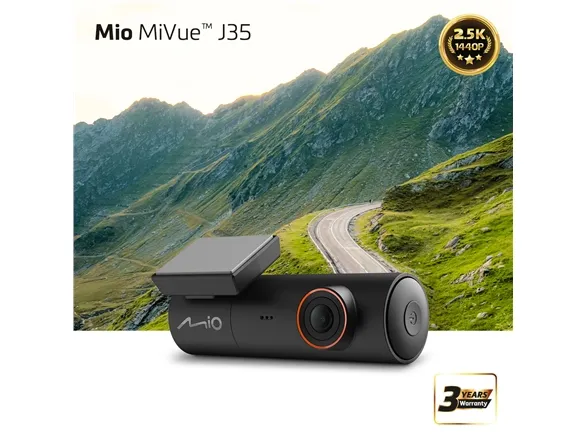 The Mio MiVue J35 is designed to enhance driving safety with advanced dashboard camera features. Equipped with a high-definition video capture capability of 2560 x 1440 resolution, this device ensures clear recording of every moment on the road. The wide-angle lens captures a significant field of view at 140 degrees, along with GPS for real-time location tracking and a G-Sensor for incident detection. With a built-in battery and integrated auto on/off function, the camera operates seamlessly without the need for manual intervention.