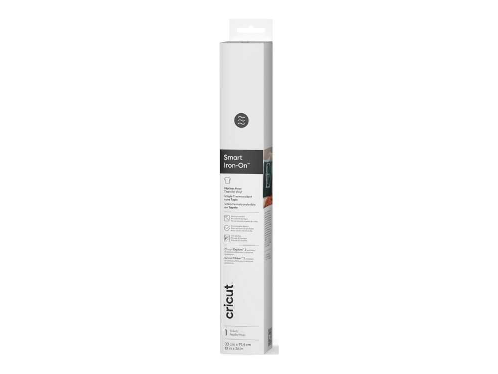 Cricut Smart Iron-On is a heat transfer material designed for versatile applications on fabrics such as cotton and polyester. Measuring 33 cm x 90 cm, it provides the size for creating custom designs on various fabric items like T-shirts and jackets. This product features a lead-free composition and is crafted for matless cutting, allowing for efficient use in crafting projects.