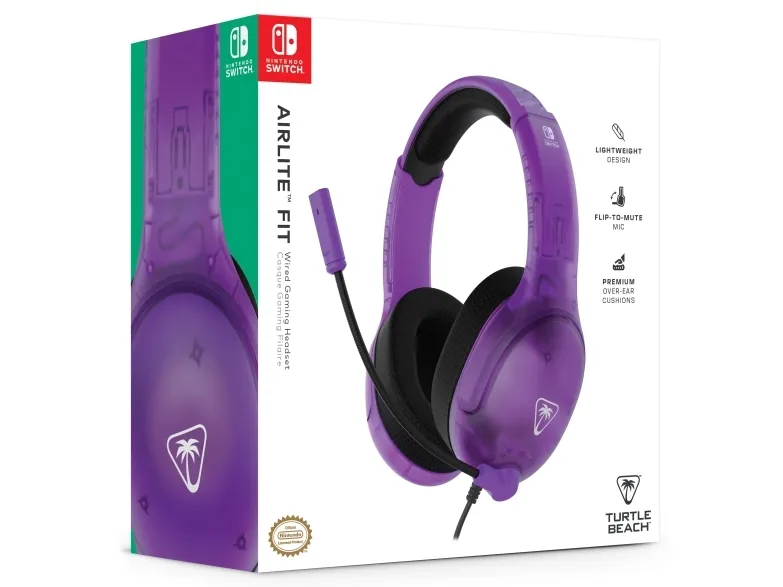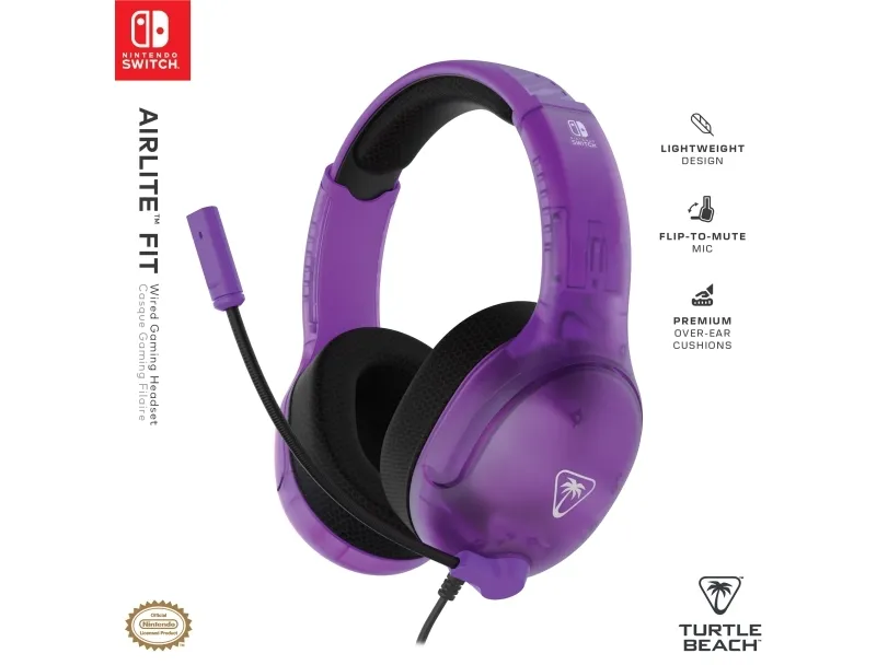 Experience immersive gaming with the Turtle Beach Airlite Fit headset. Designed for comfort and functionality, this headset features bidirectional noise-canceling technology, ensuring clear communication while gaming. The stereo sound output with a frequency response of 20 - 20,000 Hz delivers an engaging audio experience that captures every detail of your gameplay. With a 1.15 m cable and compatibility with popular gaming consoles like the Nintendo Switch, users can enjoy a reliable wired connection.