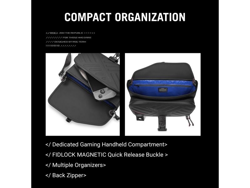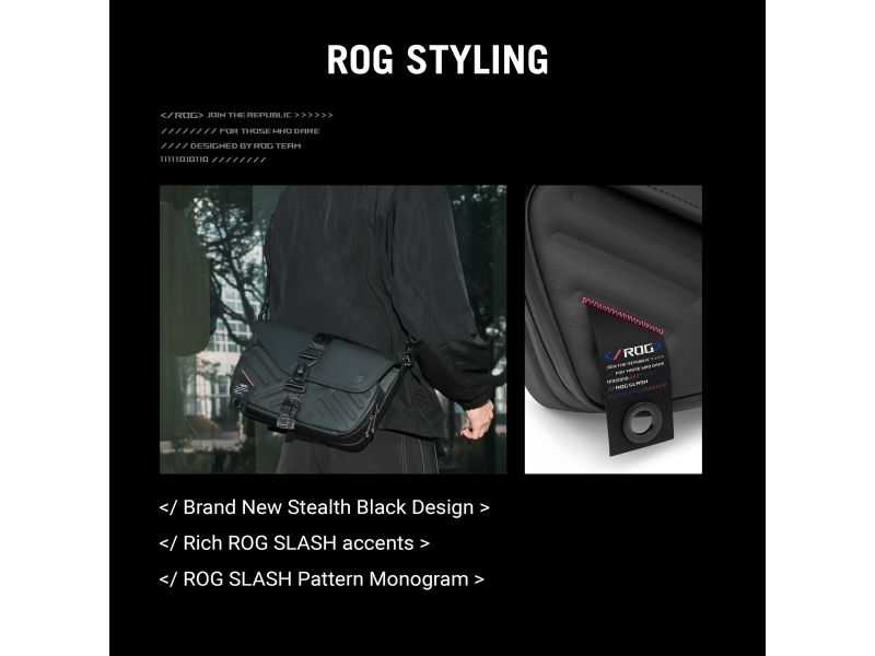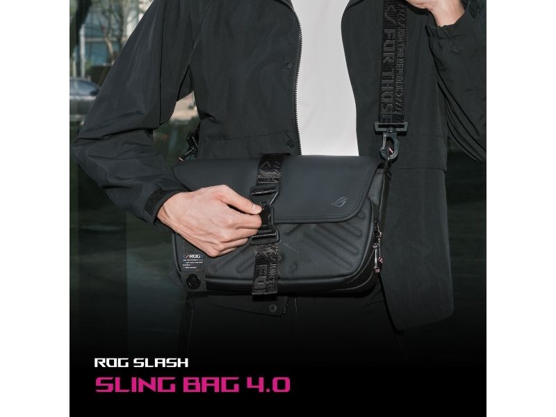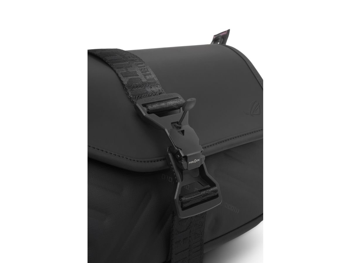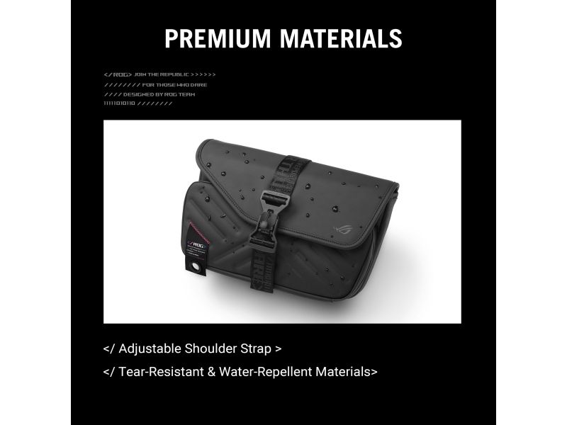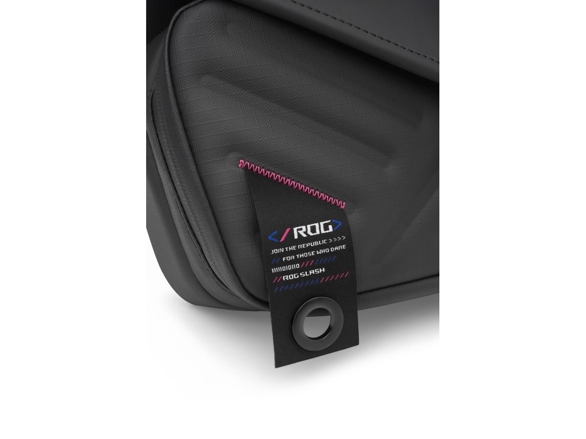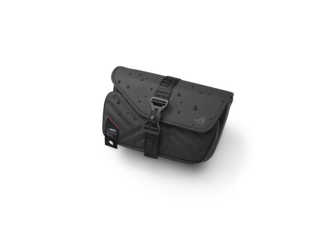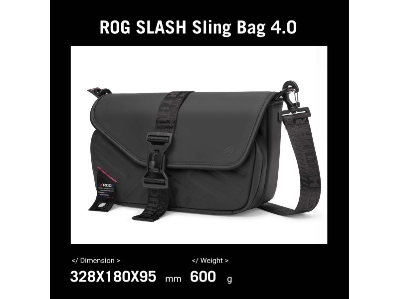 The ASUS ROG SLASH Sling 4.0 is designed for gamers who seek style and functionality in one compact package. Made from durable polyester and vegan leather, this handheld sling strap features an adjustable shoulder strap for customizable comfort. With its water-repellent design and secure buckle closure, it provides protection for your essentials, making it suitable for various environments. This sling bag comes with practical accessories like an ROG sticker and a dust bag, reflecting the gamer lifestyle. The sleek design and thoughtful features ensure that users can transport their gear conveniently and securely. Whether heading to a gaming event or just on the go, the Sling 4.0 offers both practicality and fashion.