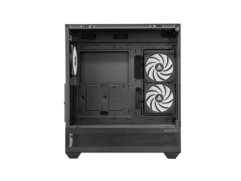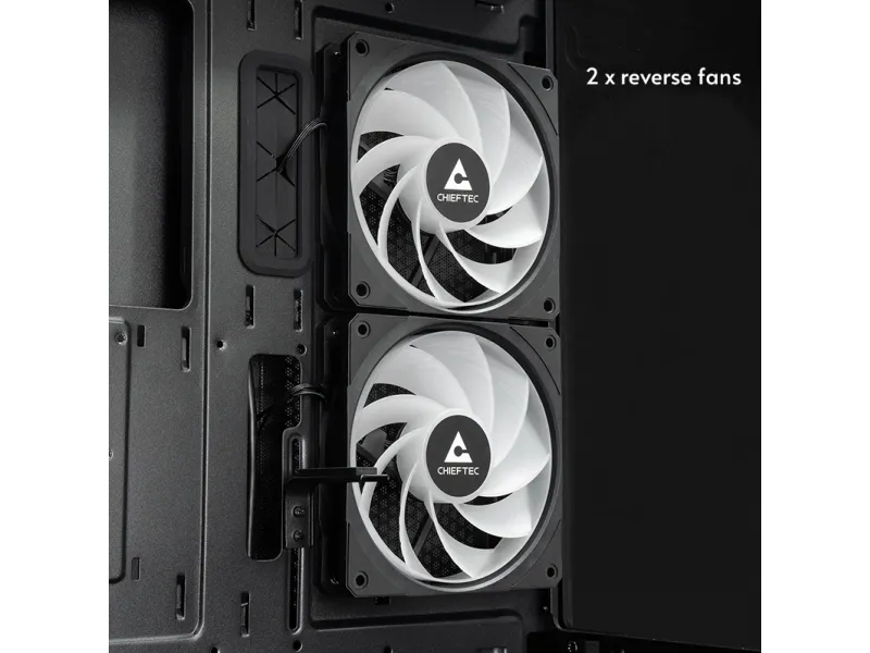 Chieftec GT-01B-OP. Form factor: Midi Tower, Type: PC, Product colour: Black. Side fans installed: 2x 120 mm, Side fans diameters supported: 120 mm, Rear fans installed: 1x 120 mm. Width: 212 mm, Depth: 425 mm, Height: 492 mm
