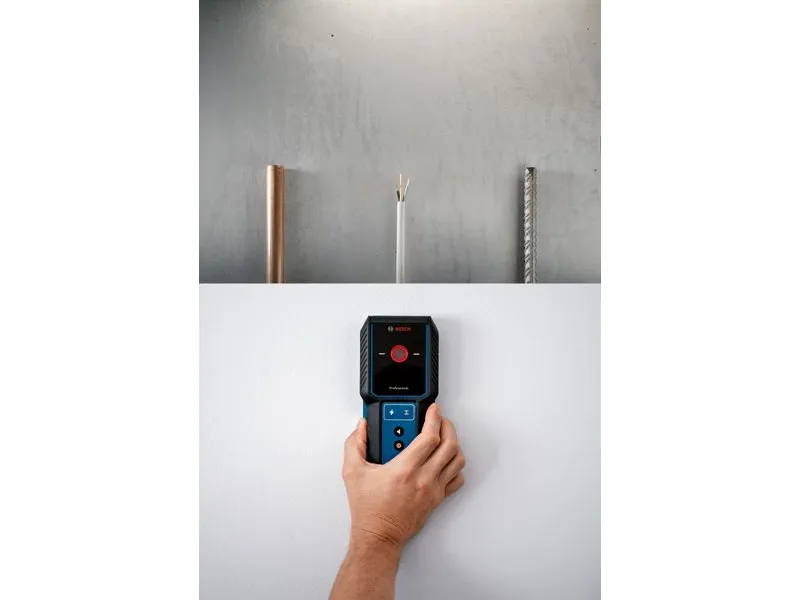 Bosch GMS 100-23. Detectable materials: Live cable, Metal, Non-ferrous metal, Product colour: Black, Blue, Maximum detection depth (steel): 8 cm. Battery technology: Lithium-Ion (Li-Ion), Battery voltage: 3.7 V, Battery capacity: 1 mAh. Power source type: Battery. Width: 86 mm, Depth: 33 mm, Height: 186 mm