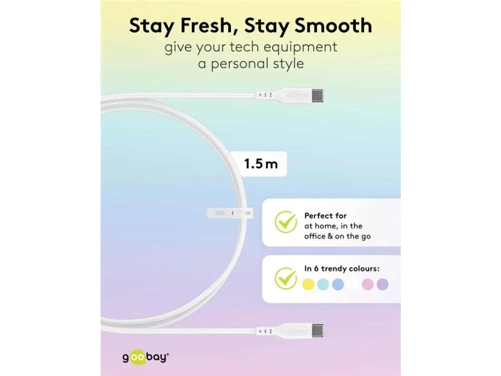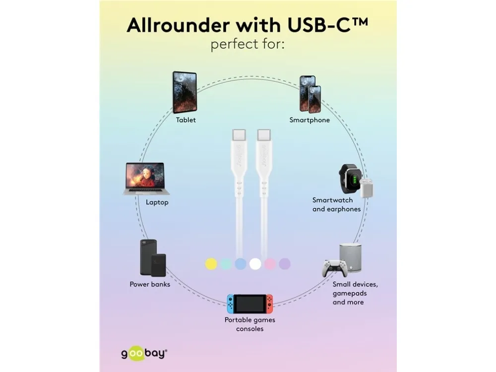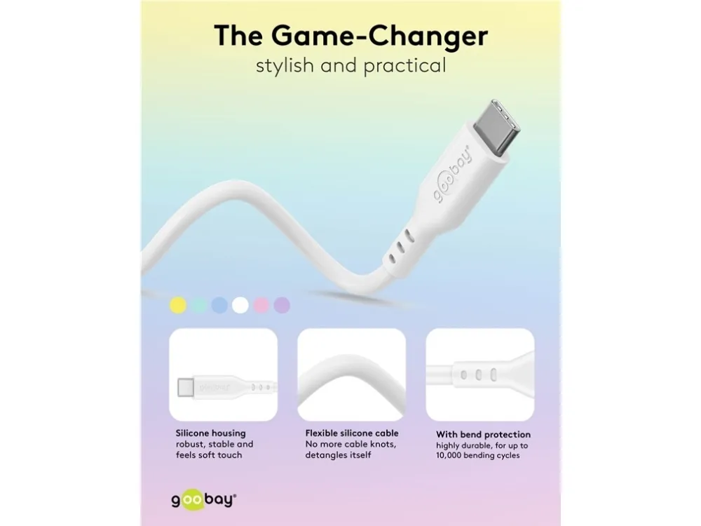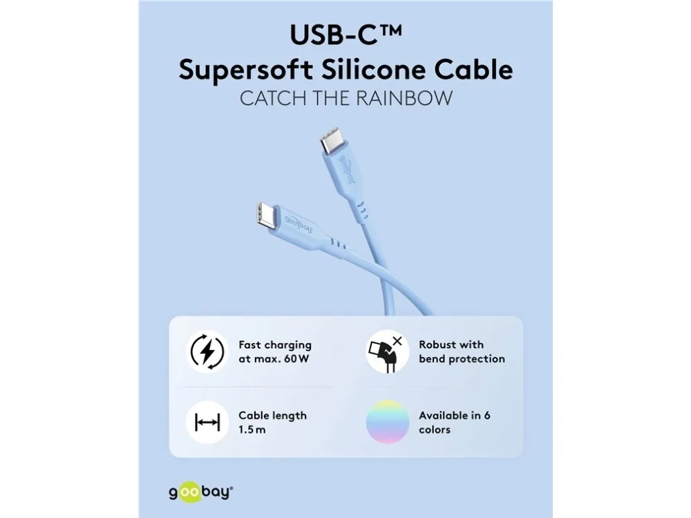 60 W, 3 A, weiches und robustes Ladekabel für USB-C™-Geräte USB-C™-Ladekabel für superschnelles Laden über Power Delivery mit bis zu 60 W Perfekt auch für Daten: Das USB-C™-Kabel schafft Hi-Speed-Datenübertragungen bis 480 Mbit/s (USB 2.0) Der samtweiche Kabelmantel aus Silikon sorgt für eine angenehme Haptik und ist schonend auf sensiblen Oberflächen Der Silikonmantel beugt effektiv einem Verknoten des Schnellladekabels vor und verhindert Kabelbruch durch seine hohe Flexibilität und den integrierten Knickschutz Durch die glatte Oberfläche lässt sich das USB-C™-auf-USB-C™-Kabel leicht und schnell reinigen Das USB-Ladekabel ist universell kompatibel mit Smartphones, Apple iPhone, Samsung Galaxy, PC, Laptop, Apple MacBook, Tablet, Drohnen oder Konsolen wie Nintendo Switch oder Steam Deck Inkl. Silikon-Kabelbinder, um das USB-C™-Kabel nach Gebrauch sicher und ordentlich zusammen zu binden