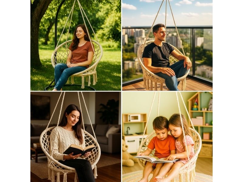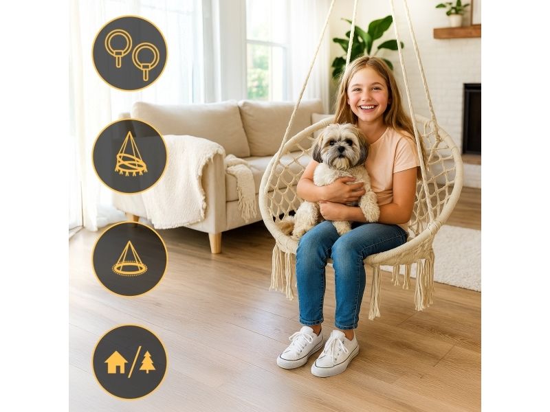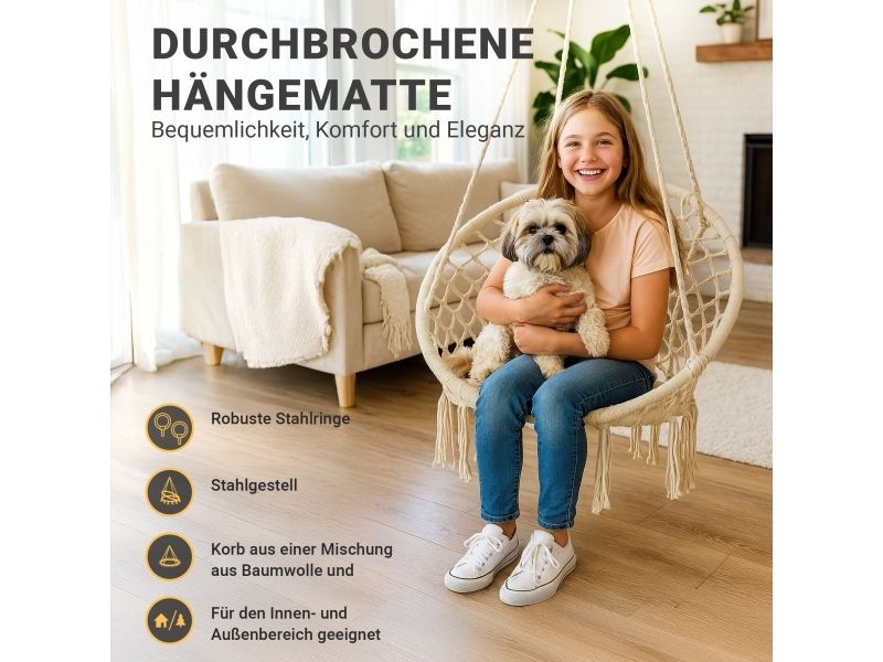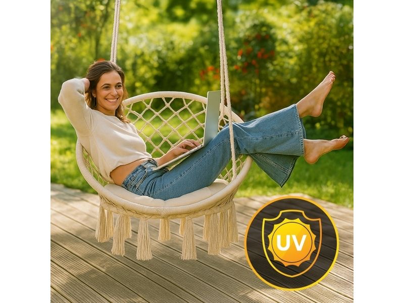 Black Forest Hängematte Hängebett/ Sessel azurblau 80x60cm ecru