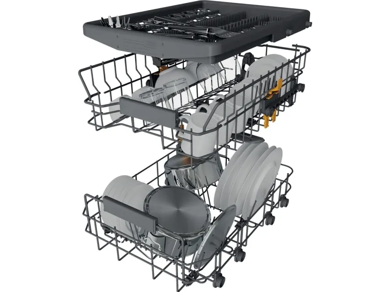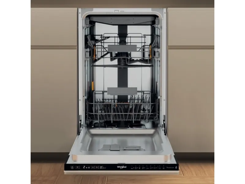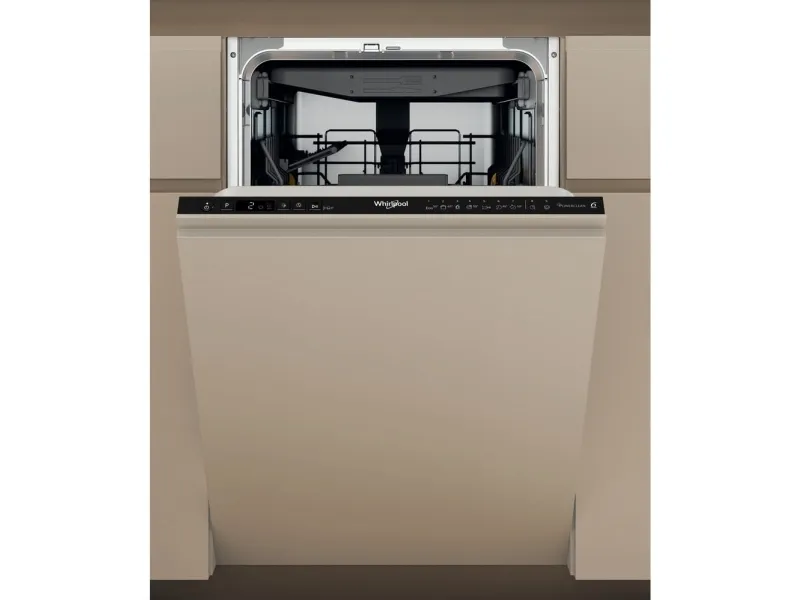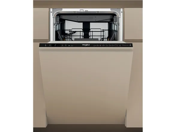 Whirlpool WH6IC11BS7LA0. Appliance placement: Fully built-in, Product size: Slimline (45 cm), Control type: Buttons. Number of place settings: 11 place settings, Noise emission class: B, Noise level: 41 dB. Energy efficiency class: C, Water consumption per cycle: 8.7 L, Energy consumption per 100 cycles: 63 kWh. Width: 448 mm, Depth: 555 mm, Height: 820 mm. Package width: 500 mm, Package depth: 675 mm, Package height: 890 mm