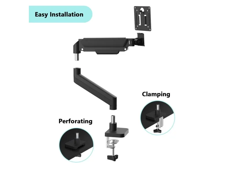 With its gas spring lift feature, the mounting kit provides smooth adjustments to find your optimal viewing angle, whether in landscape or portrait orientation. The included desk clamp and VESA mounting plate provide everything needed for efficient installation, while compliance with RoHS and ISO 9002 standards ensures quality and safety. Experience greater flexibility and organization in your workspace with this well-designed mounting kit.