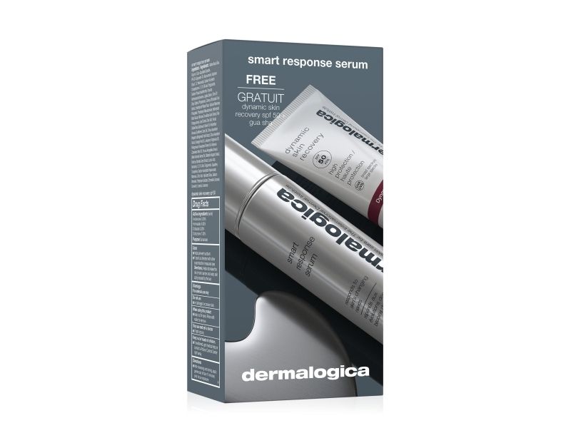 Dermalogica Set: Smart Response, Smoothes/Firms & Hydrates, Day, Serum für das Gesicht, 30 ml + Dynamic Skin Hydrating Cream für das Gesicht, SPF 50, 7 ml + Gua Sha Lifting, Gesichts-Massage-Stein für Frauen
