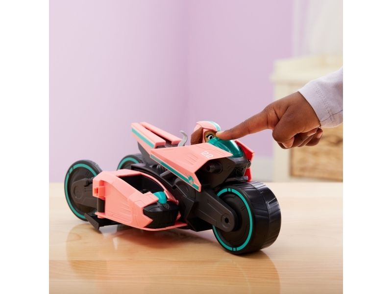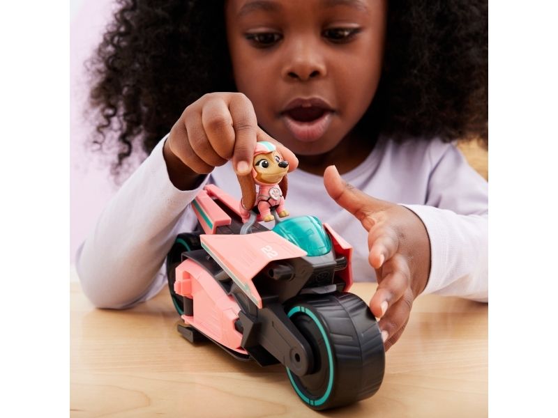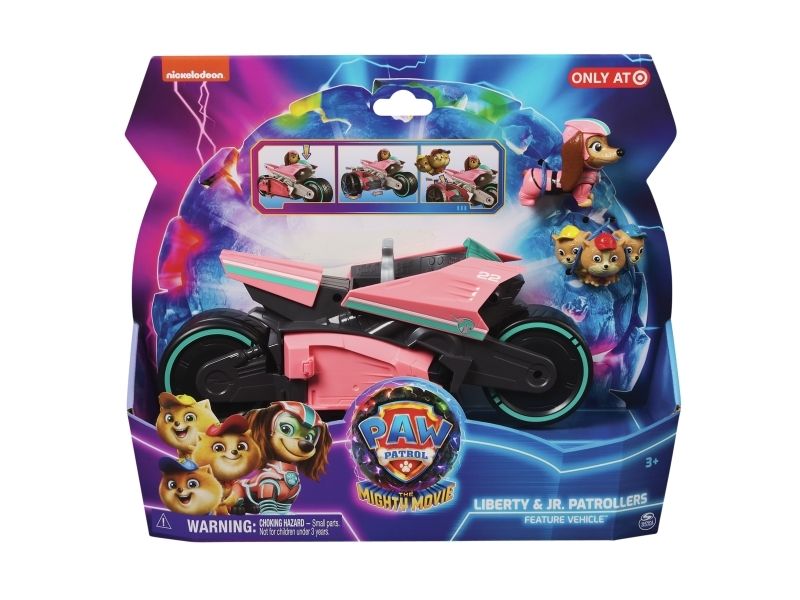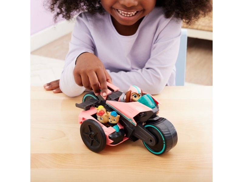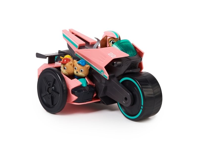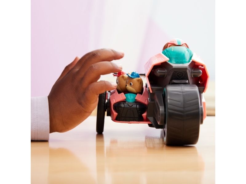 PAW Patrol : Der Mighty Kinofilm, Libertys Superhelden-Motorroller mit Beiwagen, inkl. Liberty Spielfigur und 3 Junior Patrollern (als 1 Figur), Spielzeug geeignet für Kinder ab 3 Jahren, Motorrad, PAW Patrol, 3 Jahr(e), Kunststoff, Schwarz, Pink