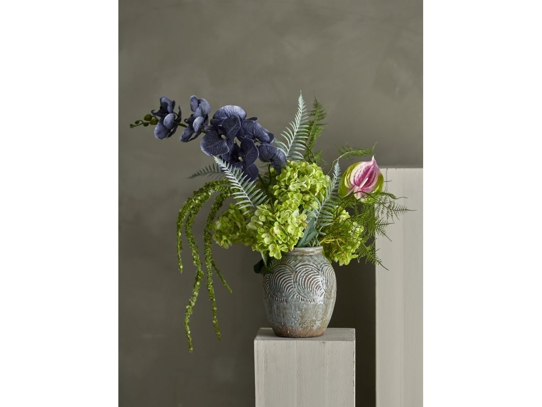 Der Poetry Blumenstrauß von Bloomingville ist wie von einem nachdenklichen Dichter komponiert. Das Bouquet balanciert tiefes Blau mit leuchtendem Grün und erschafft eine visuelle Darstellung von Tiefe und Emotion. Schneiden und formen Sie die Stiele vor dem Gebrauch, um das natürliche Aussehen des Bouquets zu betonen. In Papier eingewickelt. Vase nicht enthalten. Nur zur Dekoration, nicht dem Wasser aussetzen.