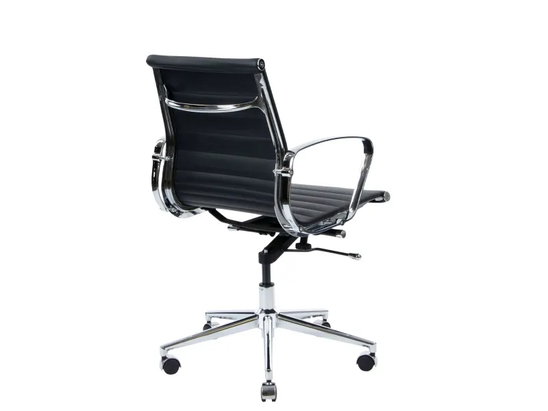 Læderstol med blanke detaljer Wye, med lav ryg, er en multifunktionel stol, der både er velegnet som kontorstol og som mødestol. Ekstra flot i ægte læder med dekorative syninger. Wye har højdejustering samt vip i sæde og ryg. Med flotte runde blanke armlæn og blankt fodkryds. Her med almindelig ryghøjde.