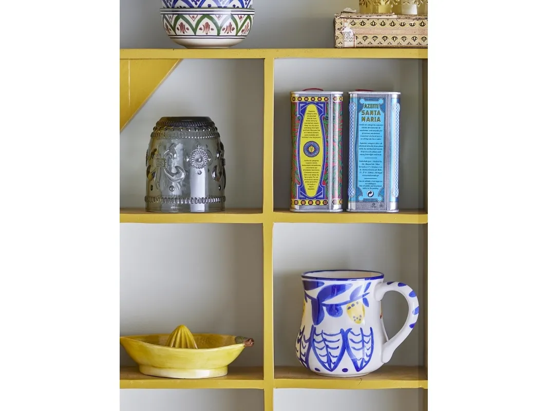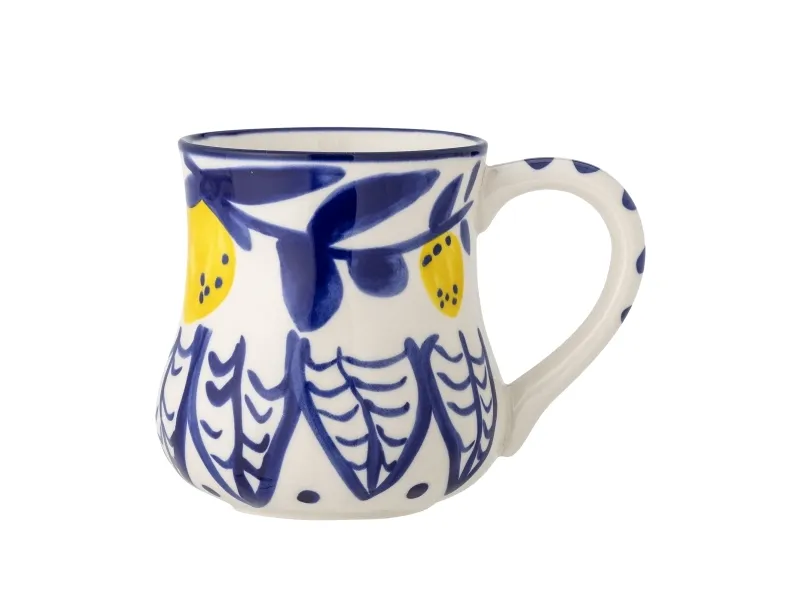 Die Maxima Becher von Creative Collection ist reich verziert mit handbemalten Zitronen, die in einem frischen, gelben Farbton leuchten, und Blättern in einem passenden tiefblauen. Diese Details werden sorgfältig im wahren mediterranen Stil aufgetragen und erfassen die Wärme und das farbenfrohe Flair der Region. Jede Tasse wird aufgrund der Beschaffenheit der Glasur und der handgefertigten Technik einzigartig sein, und es können kleine Variationen auftreten.
