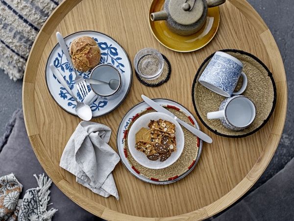 Die handgefertigten Becher Molly von Bloomingville haben ein schönes blaues Blumenmuster.