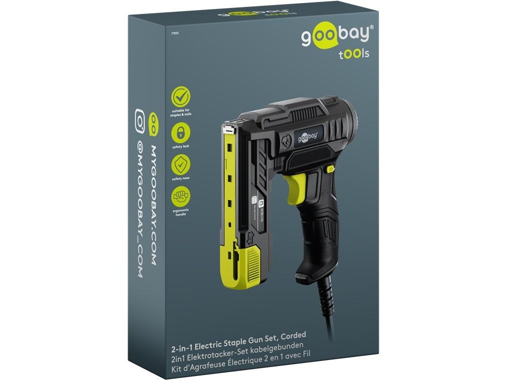 mit 400 Tackernadeln und 100 Nägeln Perfekt für DIY-Projekte und Polsterarbeiten: Der Elektrotacker befestigt sauber und präzise Materialien wie Stoff, Folie, Leder, Papier, Gitter, Kunststoffe oder Holz 2in1 Tacker und Nagelpistole: Der Tacker lässt sich mit Klammern oder Nägeln bestücken und ist daher auch bei Renovierungsarbeiten flexibel einsetzbar Die Tackerpistole verschießt ca. 20 Klammern pro Minute, kompatibel mit Tackerklammern vom Typ 53 (Länge 6-14 mm) und Nägeln vom Typ 47 (Länge 14-15 mm) Lieferung inkl. 400 Tackernadeln à 10 mm und 100 Nägeln à 14 mm Mit gummiertem, ergonomischem Griff für angenehmes Arbeiten ohne Ermüden der Hand Stromversorgung über Netzkabel mit 230 V (Konturenstecker Typ C, CEE 7/17), Kabellänge 2,0 m