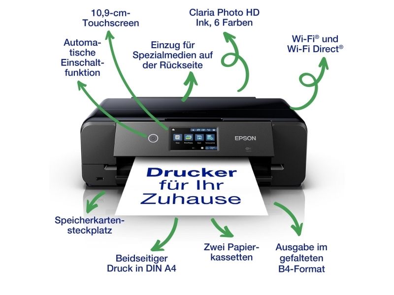 Epson Expression Photo XP-980 Farbtinten-Multifunktionsdrucker (Original) A4/A3, bis zu 8,5 S./Min., 100 Blatt, USB, LAN, Wi-Fi(n), USB-Host