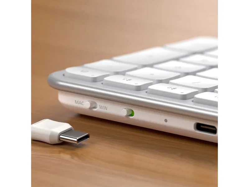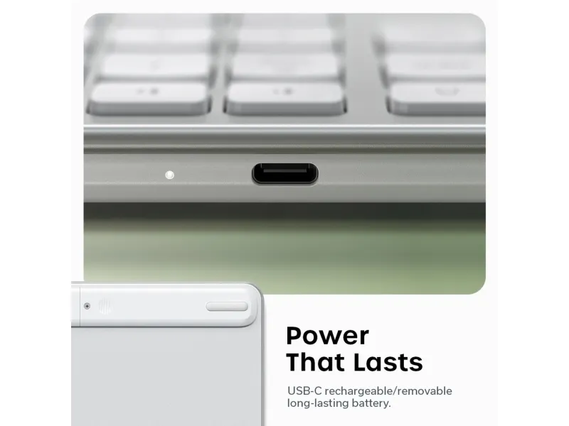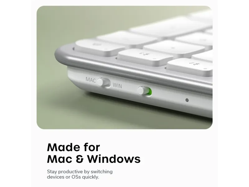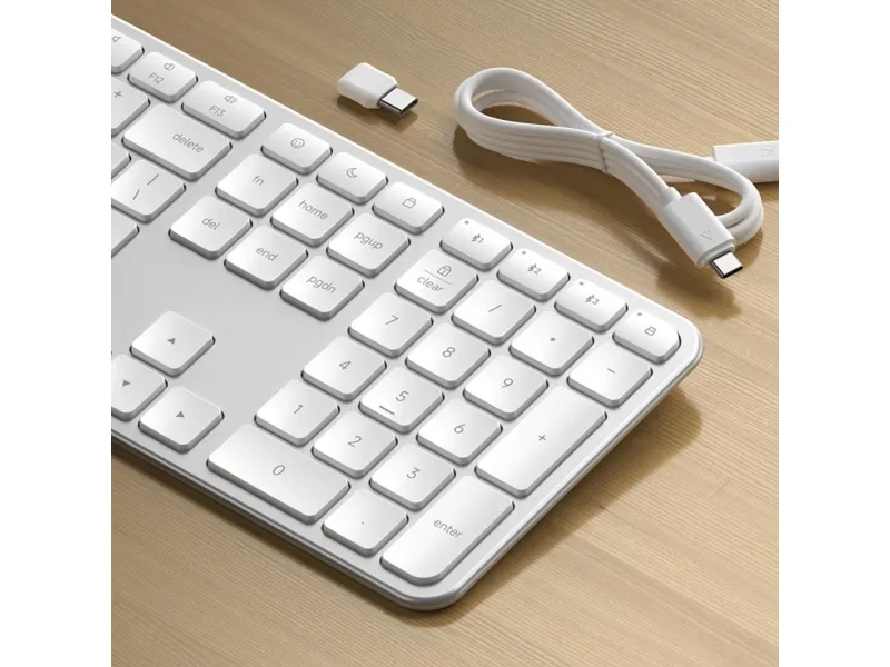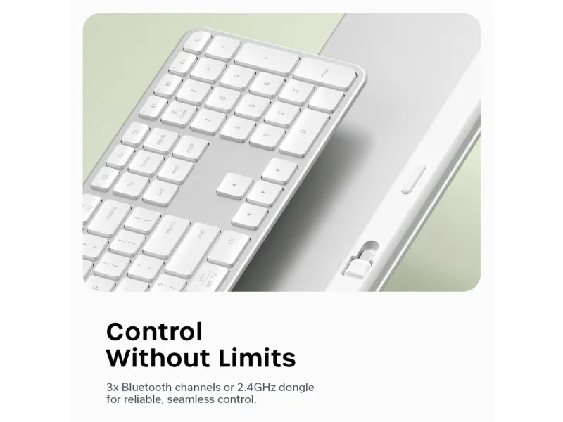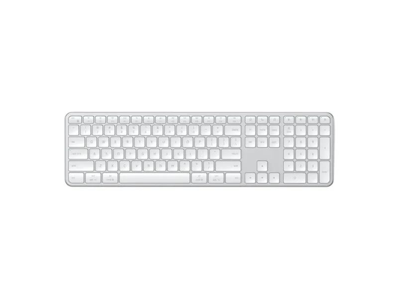 The Satechi EX3 Slim Wireless Keyboard with Nordic layout is a full-size professional keyboard designed for smooth productivity across devices and operating systems. With quiet scissor switch keys a dedicated numpad and fast switching between up to four connections it delivers a clean dependable typing experience for both office and home setups.Connect to up to four devices with 4-in-1 wireless connectivityFull-size layout with numpad and navigation keys for faster workflowsQuiet scissor-switch keys in a slim comfortable designMac and Windows support with instant OS key remappingRechargeable removable battery with up to five (5) weeks of use per chargeConnect to up to four devices with 4-in-1 wireless connectivity Pair the keyboard to up to three devices via Bluetooth 5.3 and connect a fourth using the 2.4 GHz USB-C nano receiver. Switch between devices in seconds without needing to re-pair making it easy to move from laptop to tablet to desktop throughout the day. Simply press the dedicated connection shortcut keys (BT1 BT2 BT3 or 2.4G) to switch instantly. Full-size layout with numpad and navigation keys for faster workflows The Slim EX3 is built as a full-size keyboard with a dedicated numpad and a navigation cluster that supports efficient editing data entry and everyday multitasking. It is a practical choice for spreadsheets creative work and general productivity. Quiet scissor-switch keys in a slim comfortable design Low-profile scissor-switch keys provide a precise controlled feel with quieter keystrokes suited to shared workspaces and focused environments. The slim design keeps your typing position comfortable while maintaining a premium clean look on any desk. Mac and Windows support with instant OS key remapping Toggle the OS switch to configure the keyboard for Mac or Windows. Key functions and shortcuts align immediately so you can work naturally across different computers without relearning key layouts. Rechargeable removable battery with up to five weeks of use per charge The Slim EX3 runs on a rechargeable AA battery battery designed to last up to five weeks on a single charge. The battery is removable and the keyboard supports USB-C charging designed with long-term usability in mind and compliant with the EU 2027 battery replaceability standard. Package includes1x Satechi Slim EX3 Wireless Keyboard - Nordic Layout Silver1x USB-C to USB-C charging cable (0.8 m)2.4 GHz USB-C nano receiver1x Quick Starter GuideProduct specificationsBrand: SatechiColour: SilverLayout: Nordic Layout (Swedish Norwegian Danish)Bluetooth version: 5.3Bluetooth connections: up to 3 devices2.4 GHz connection: 1 device via included 2.4 GHz USB-C nano receiverCharging port: USB-C (charging only not for data)Key type: Low-profile scissor-switchLength: 42.64 cmWidth: 11.93 cmHeight: 1.67 cmWeight: 552 gCompatibility: macOS iOS/iPadOS Windows Android Chrome OS
