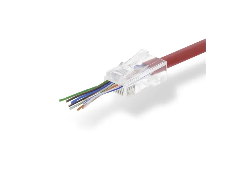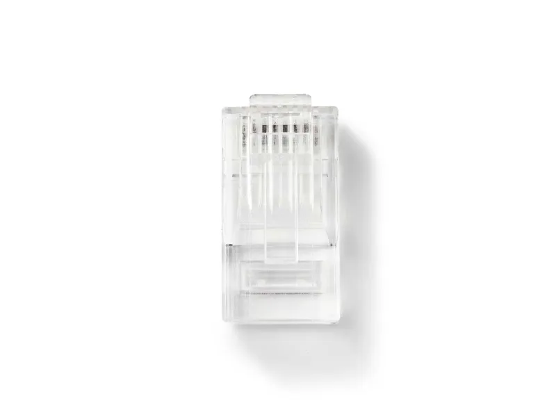 These RJ45 connectors can be mounted onto stranded UTP CAT5 cables and is suitable for inexperienced users. Nedis CCGB89331TP. Connector(s): RJ45, Product colour: Transparent, Connector gender: Male. Weight: 15 g, Width: 12 mm, Depth: 23 mm. Quantity per pack: 10 pc(s), Package type: Box
