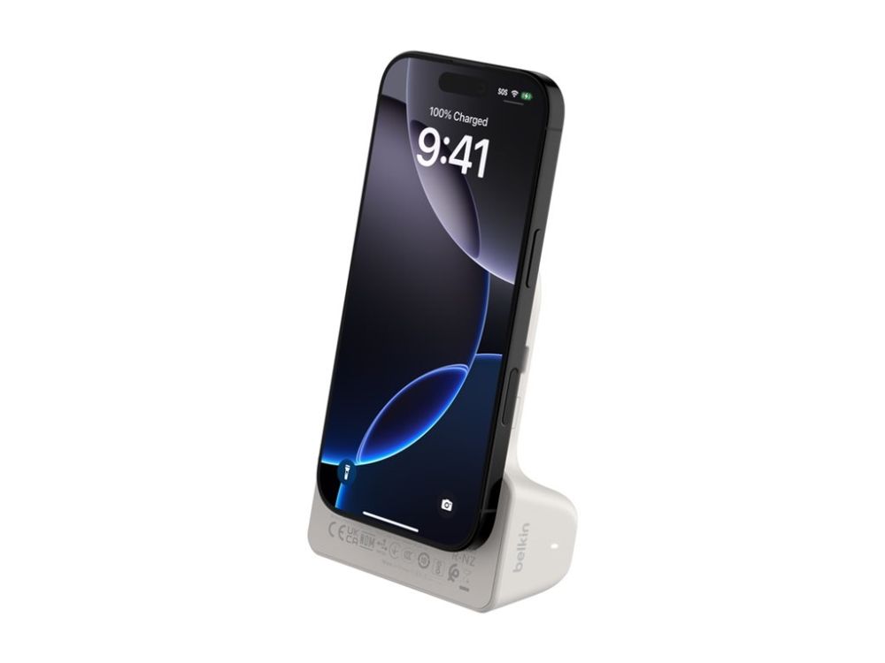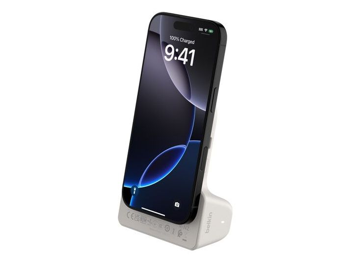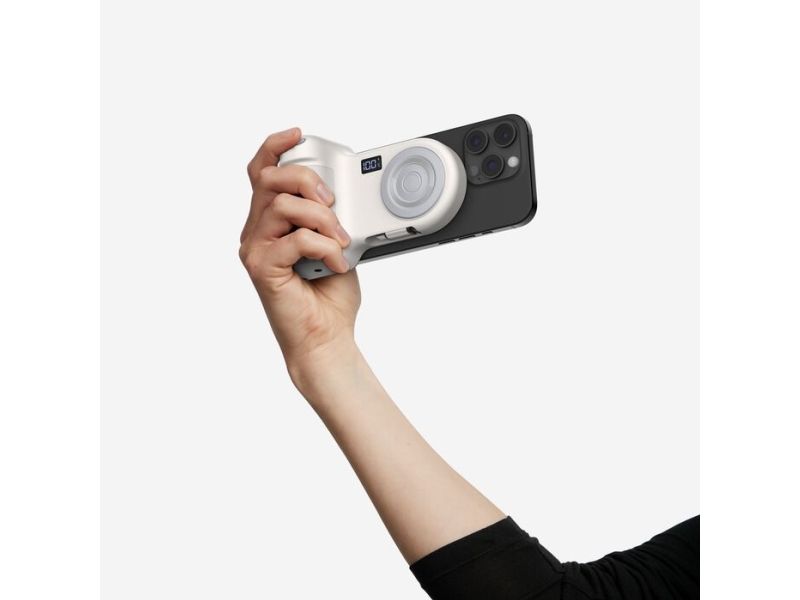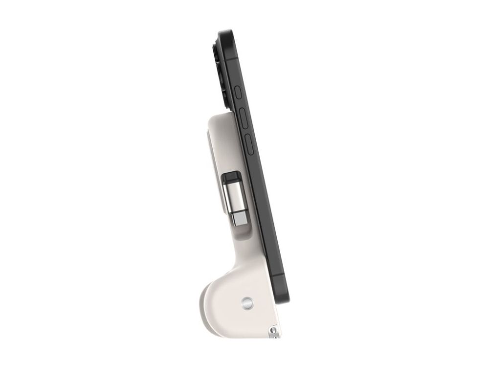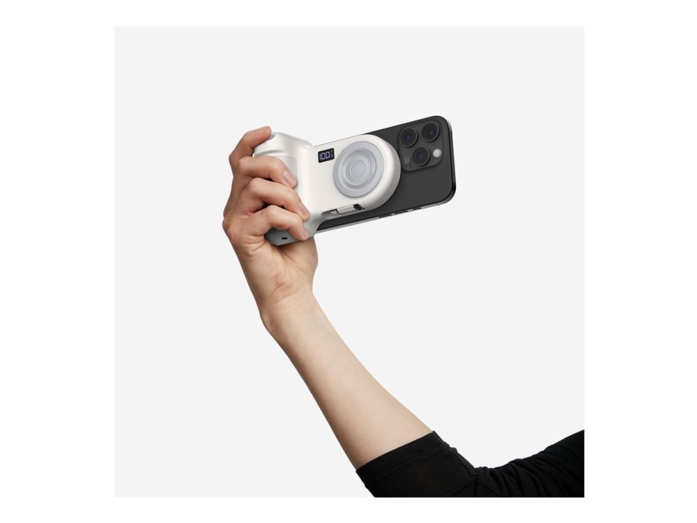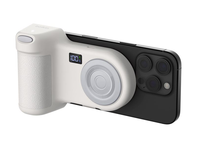 The Belkin Stage PowerGrip is designed to enhance photography and videography experiences with a versatile stand and hand grip. This camera grip features a power bank for extended use, ensuring devices remain charged throughout the day. With the integration of a wireless charger and a retractable USB-C cable, this accessory is perfect for on-the-go creators, providing multiple charging options in a single product.