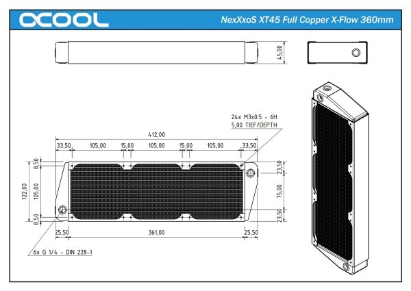 Alphacool NexXxoS XT45 Full Copper X-Flow 360mm - Flüssigkühlsystem-Radiator - schwarz