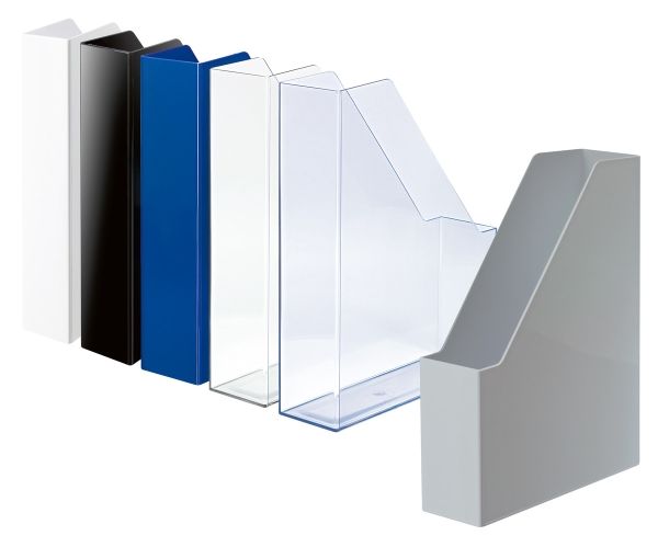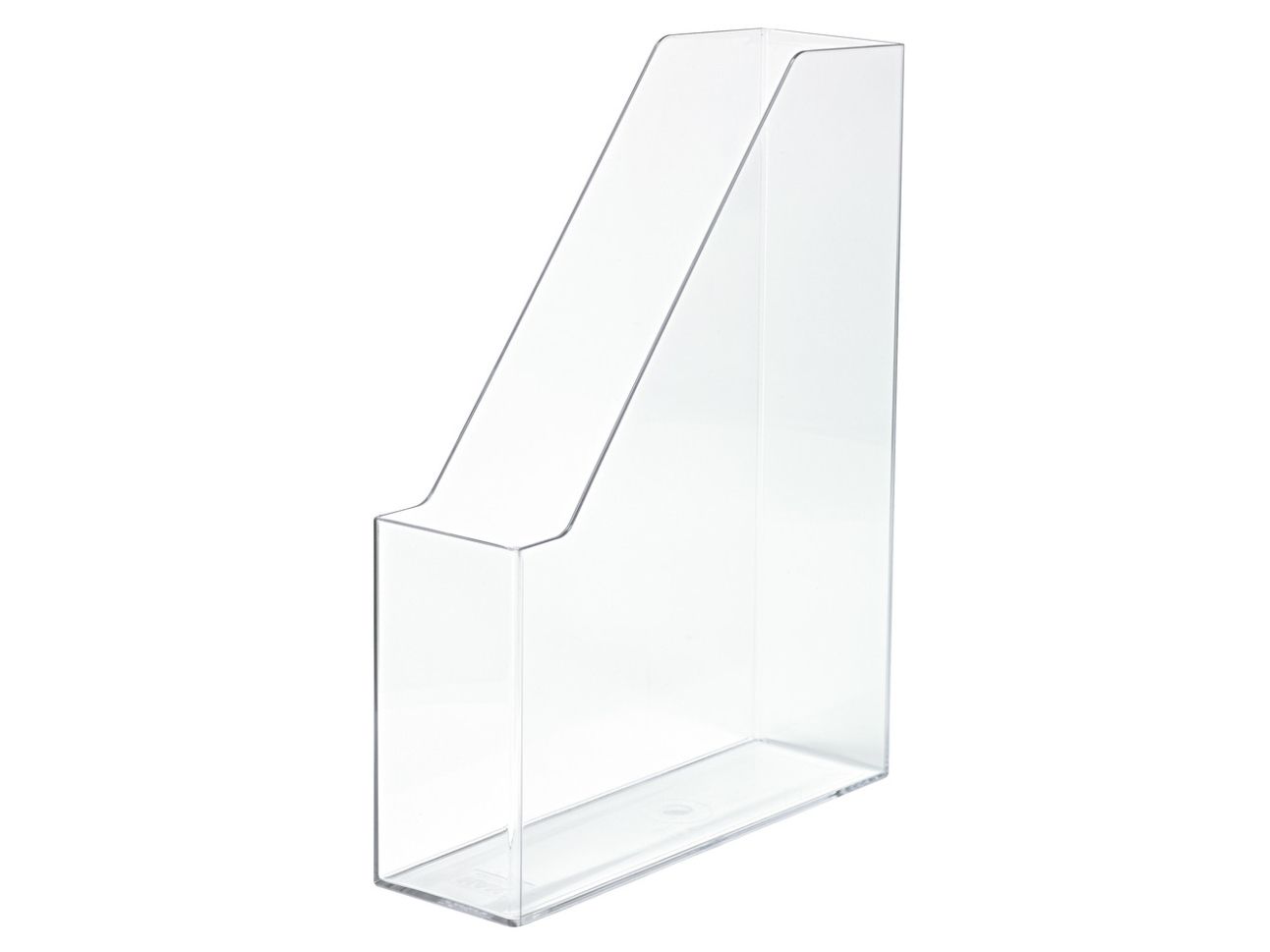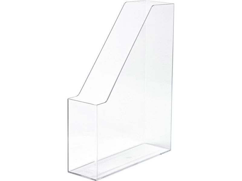 - Magazine rack i-Line - collects and archives all formats up to C4 - elegant design - stylish and glossy - clear lines for modern office environments - high-quality plastic, free of heavy metals - Outer dimensions: (W x H x D): 76 x 150 x 248 mm - Rear height: 315 mm - Colour: crystal-clear