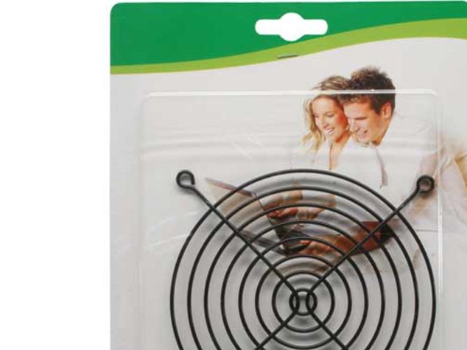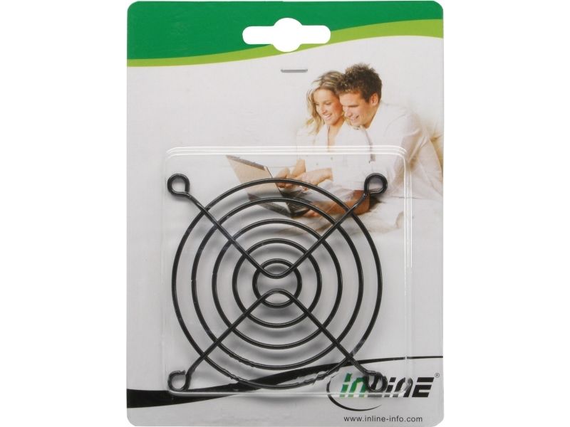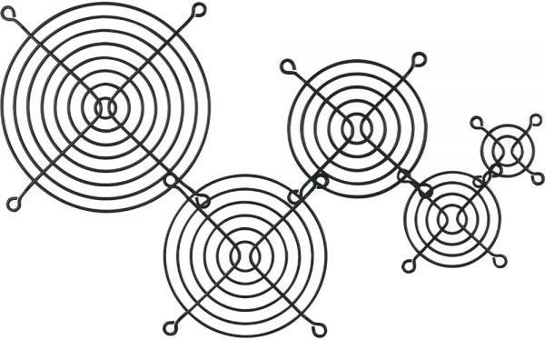 - Material: Metal wire, 1.5mm diameter, black. - grid spacing about 5-6mm. - dimensions about 120x120mm. - suitable for 120mm case fan.
