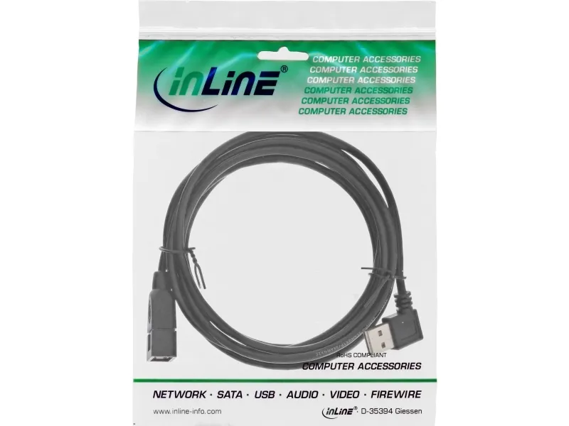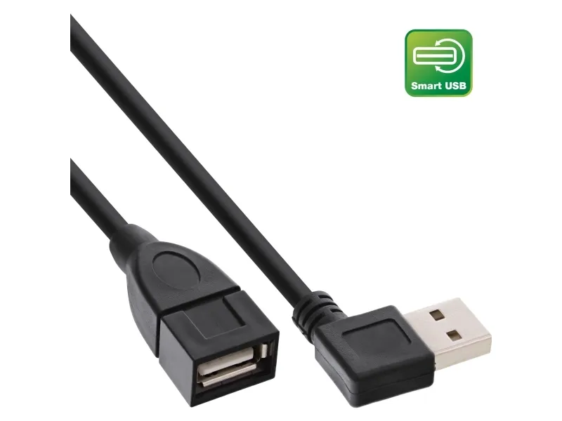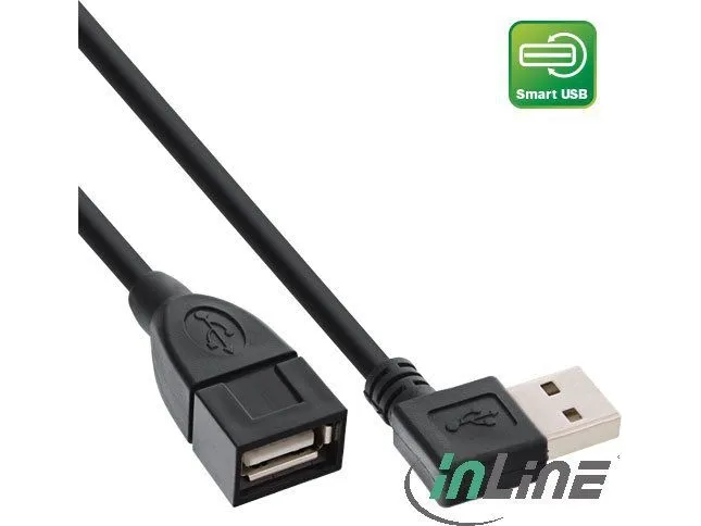 InLine® USB 2.0 Smart Cable angled + reversible Type A male / femaleInLine USB 2.0 Smart Cable angled + reversible Type A male / female black 2m. Cable length: 2 m. Connector 1: USB A, Connector 2: USB A, USB version: USB 2.0, Connector gender: Male/Female, Product colour: Black