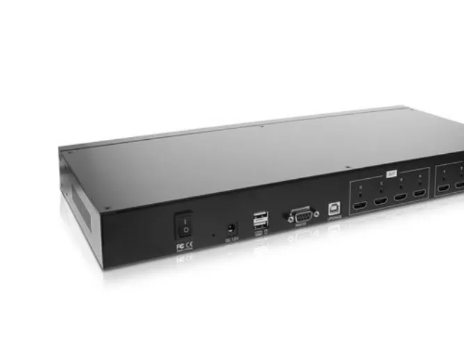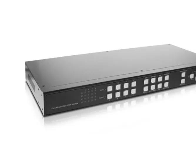 The InLine 4x4 multi-view distributed HDMI Matrix 4 HDMI Inputs 4 HDMI outputs individually, while the mapping between the video source and the display on the display is very individually adjustable, it can be shown with any source on a 2x2 video wall. The six displayable modes are: Matrix, PIP (Picture in Picture) PAP (Picture in Picture) Quad View, Windows mode and video wall. In matrix mode, 1-4 sources can be printed on 1-4 displays. PIP forms a source as a small picture from within another source. The Windows mode shows all 4 sources in window style simultaneously on the display. The Quad View mode shows the 4 sources in windows side by side on all four displays. The PAP provides a source of great on a display, the other 3 sources besides small. The video wall stretches the mode signal from a source 4 mounted on the display as a video wall (2x2) is thus a representation of 1920x1080 to 3840x2160 inserted possible. The operation of the matrix switch can be operated via the buttons on the front panel, via an IR remote control, a mouse / keyboard (via USB) or via RS-232. The switch has 19 "format and can be comfortably accommodated with the mounting brackets in network closets. You can program up to eight individual preferences, which can be called with only 2 buttons. The OSD menu helps to display the source and programming.