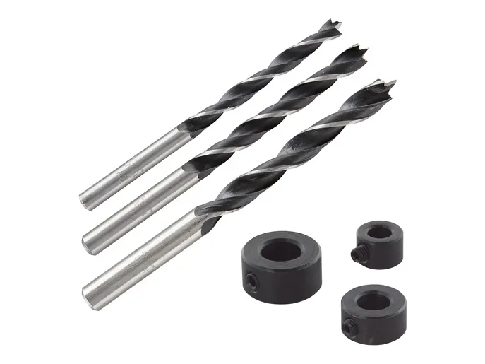 Mit dem Dübelbohrerset von wolfcraft erzielen Sie präzise Vorbohrungen in einem Ø von 6, 8 oder 10 mm in Holz, Sperrholz, Span- und Hartfaserplatten. Die Bohrer können Sie zusammen mit dem Universal-Holzdübelset (3750000), dem Universal-Meisterdübler (4640000), der Universal-Holzdübelbox (4645000) und der Dübelleiste (4650000) von wolfcraft einsetzen. Die integrierten Tiefenstopps ermöglichen Ihnen kontrolliertes Bohren mit der gewünschten Bohrtiefe, sodass der Dübel im Anschluss perfekt positioniert werden kann. Mit seiner Madenschraube lässt sich die Stellringe schnell am Bohrer montieren. Dank der Zentrierspitze greifen die Bohrer sofort in das Material und ein Abrutschen wird verhindert.