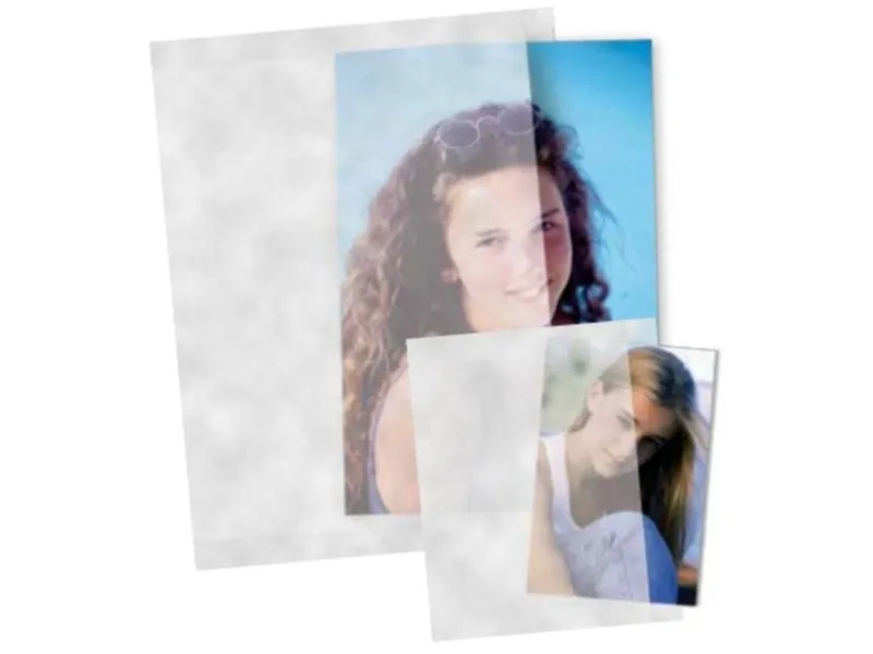 aus Pergamin, silberweiß 40g/m^2 Öffnung an der Breitseite, mit überstehendem Rand als Fingergriff.