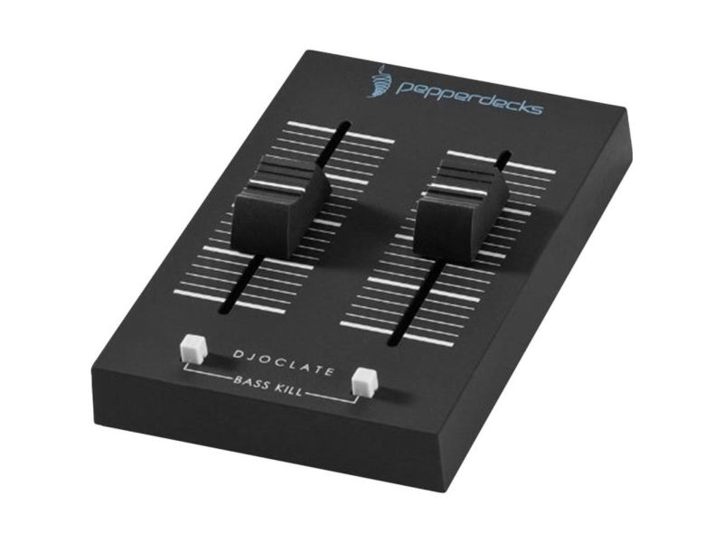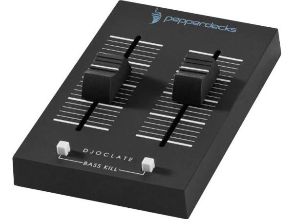 PEPPERDECKS DJOCLATE DJ-MIXER2 fadere til 2 separate kanaler · 2 bas-kill knapper til at sænke bassen fra de 2 kanaler · 2 jackindgange · Jackudgang. Pepperdecks DJOCLATE er den første virkeligt mobile mixerpult. Med en bredde på 8 cm, en længde på 12 cm og en højde på 3 cm kan du tage DJOCLATE med hvor som helst og når som helst. Ved hjælp af den medfølgende beskyttelsespose er din yndlings-mini-mixerpult godt opbevaret, når du er på farten. Tilslutning af indgangskilder er meget enkel. Du skal blot tilslutte indgangskilderne til mixerpulten med de medfølgende jackkabler (2 stk. pr. pakke). Således er det underordnet om der tilsluttes en iPod, iPhone, en smartphone, en CD-afspiller eller en anden lydkilde. Udgangskilden - som for eksempel hjemmets stereoanlæg eller batterihøjtaleren, når du er på farten - bliver tilsluttet udgangen af via 3,5 mm jackkabel (medfølger ikke). Og så er du ganske snart klar. Start afspilning på den ene enhed og de skub de tilhørende fadere på mixerpulten